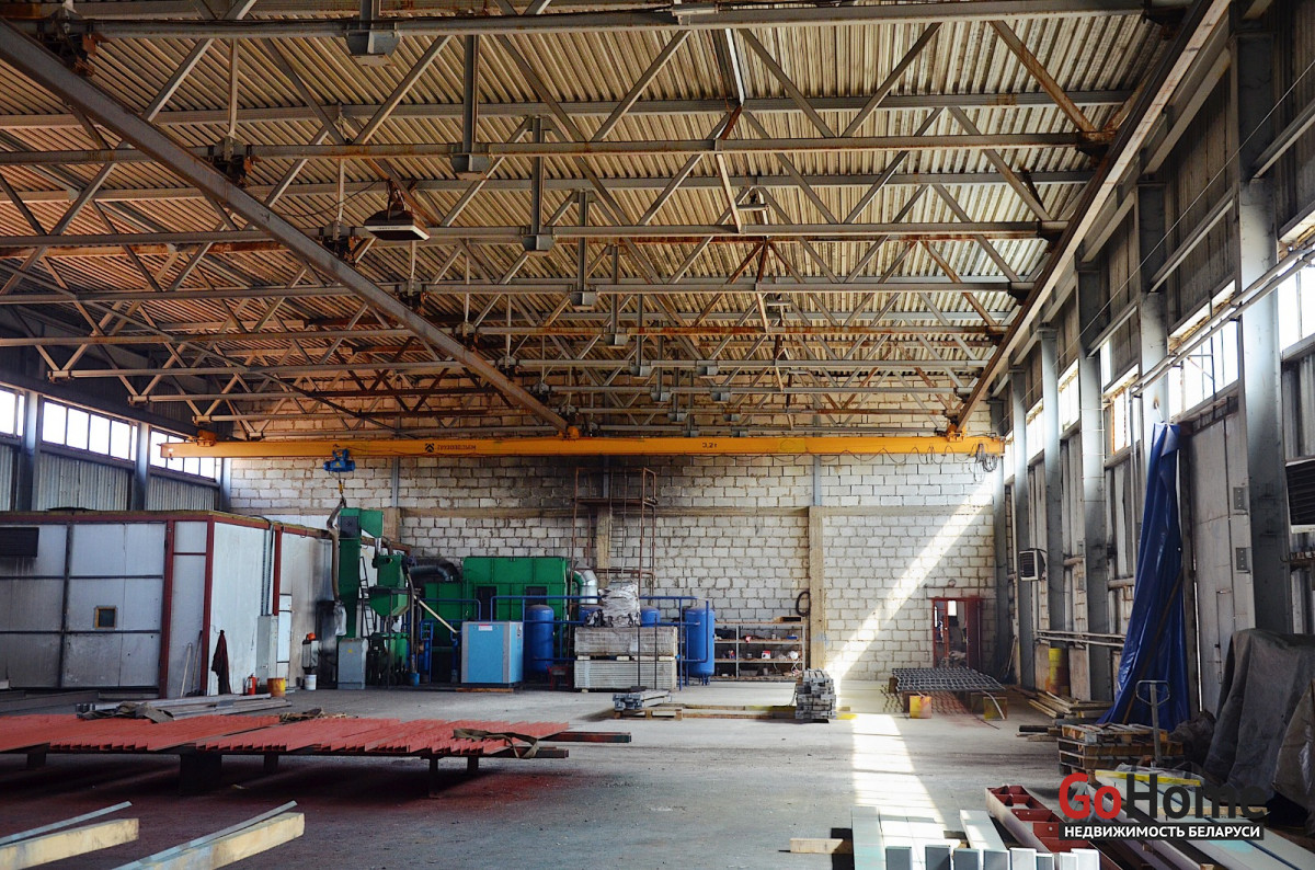 Высота потолков – 7,2 м, 8,4 м. Кровля мягкая. Полы бетонные, стены – утепленные панели «Молодечно», окна – двухслойные стеклопакеты, кран-балки – г/п 3,2(3 шт.), 1,5 (1 шт.). Разделено на несколько цехов. Есть бытовки. Высокие ворота, санузел, душевая. Вода – две артезианские скважины и водонапорная башня.