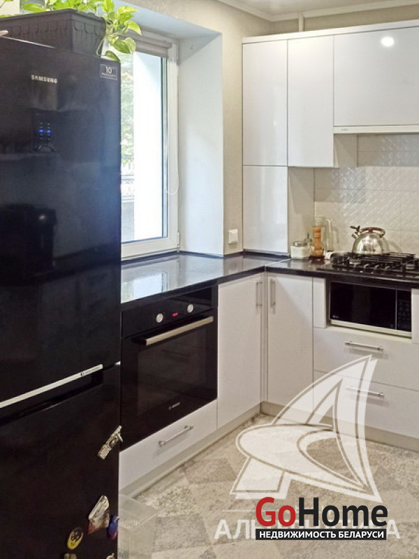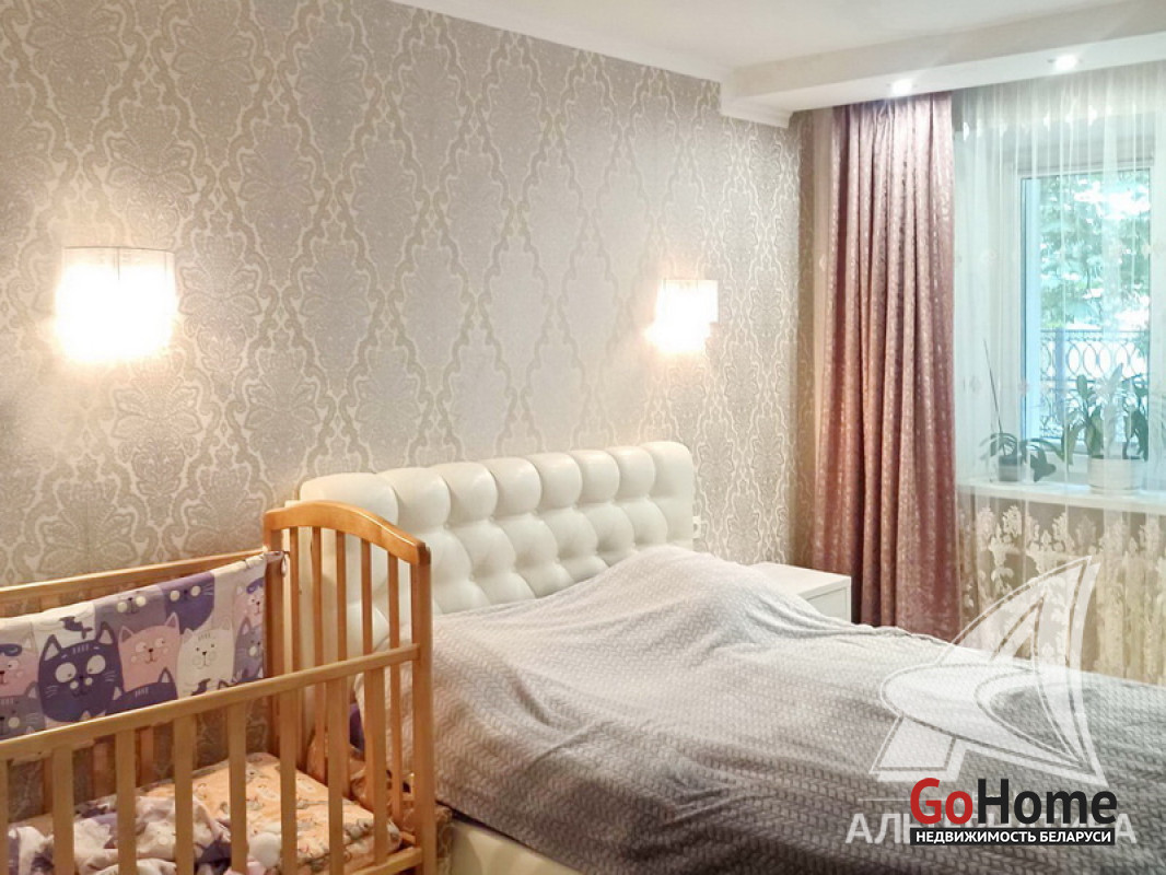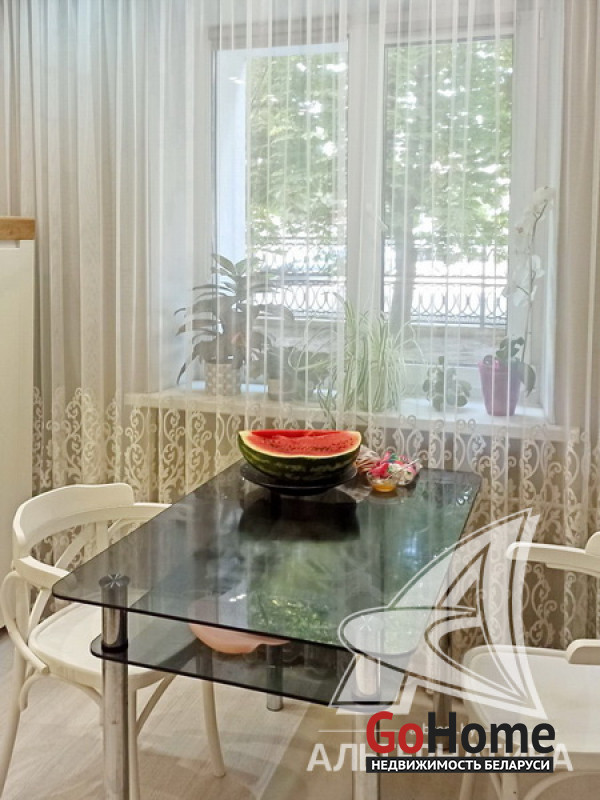 3-комнатная квартира, г. Брест, б-р Шевченко, 1963 г.п., 1 / 5 кирпич, 58,6 / 58,6 / 38,3 / 5,7, санузел совмещенный, стеклопакеты, межкомнатные двери - массив, входная дверь металлическая, комбинированные потолки - снежка, натяжные, из гипсокартона и с разноплановой системой освещения (2,61 м), полы - ламинат и плитка, стены - декоративная штукатурка и оклеены обоями, в санузле современная плитка, заменена сантехника, заменен полотенцесушитель, заменены сантехнические трубы, домофон. Кухонный гарнитур, шкаф-купе (в спальне, в прихожей). Квартира с индивидуальными дизайнерскими решениями. Окна выходят на зеленую зону. Чистый подъезд. Капитальный ремонт дома 2016 г. Утепление дома шубой. Лот - 222900