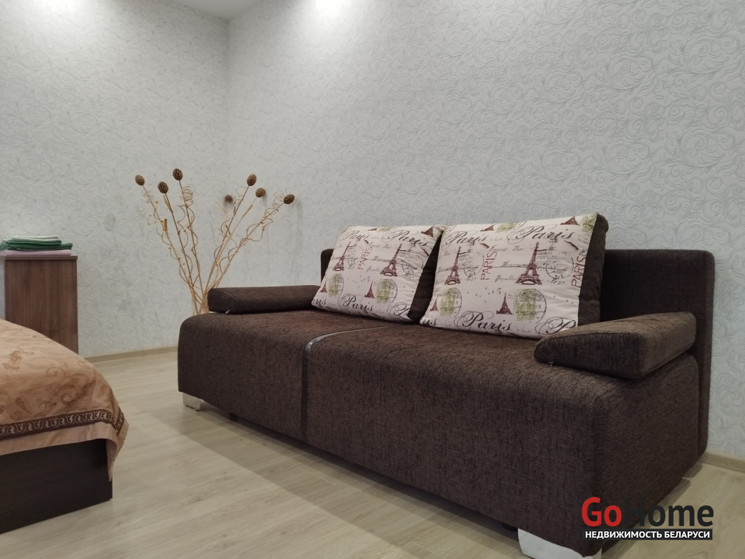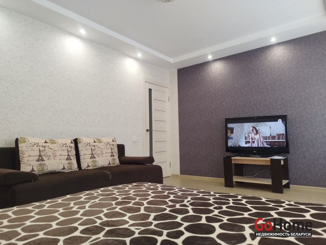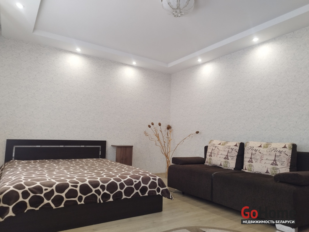 Уютная, светлая, чистая квартира с современным ремонтом в центре города, в шаговой доступности ТЦ Е-Сити, многочисленные магазины и банки, городской парк, кофейня-кондитерская \\\"Caffetteria\\\", пиццерия, кафе, стоматологическая клиника \\\"Челсена-Дент\\\". В квартире есть все для вашего комфортного и удобного проживания. Гостиная с большой двуспальной кроватью, раздвижным диваном, постельным бельём, ЖК телевизор, Wi-Fi, ZALA. Кухня полностью оборудована для приготовления пищи: газовая плита, духовой шкаф, печь-СВЧ, холодильник, электрический чайник, столовые приборы и кухонные принадлежности. Совмещенный санузел, пол с подогревом, свежие полотенца, средства личной гигиены. Имеется также и мелкая бытовая техника: фен и утюг. Чистота и порядок наводятся после каждого посетителя с применением дезинфицирующих средств. Предоставляем все отчетные документы. Стоимость 70 BYN для одного человека, 80 BYN за двоих. Пятница, выходные и праздничные дни - от 100 BYN. Скидки при длительном проживании и постоянным клиентам.