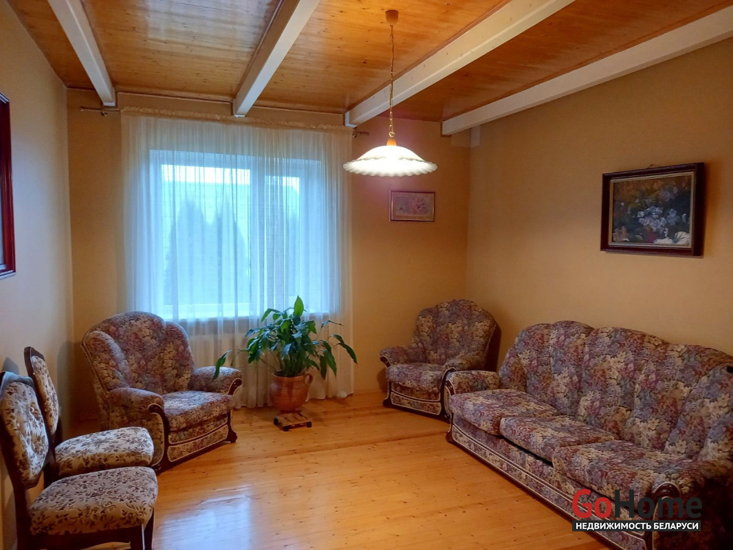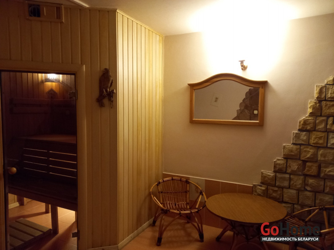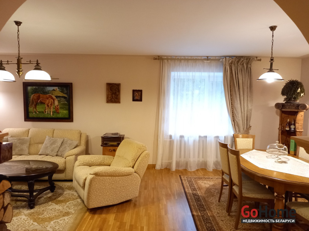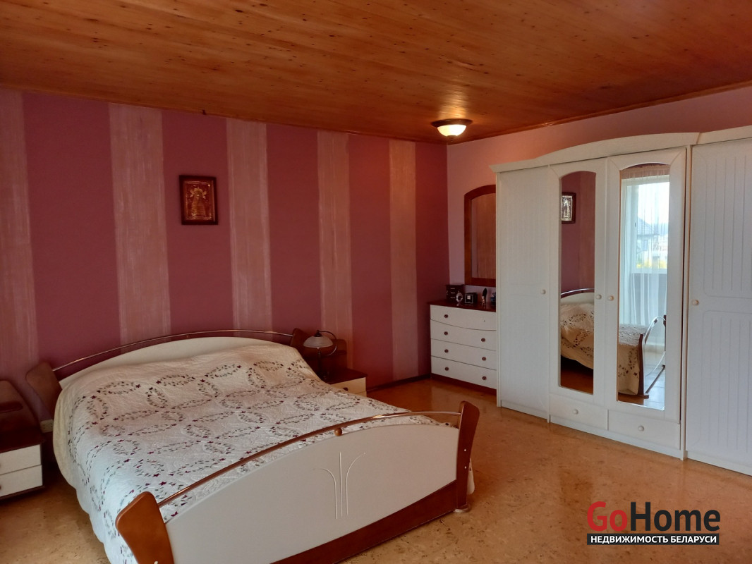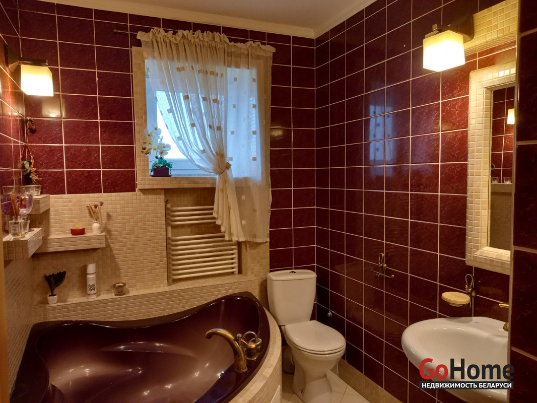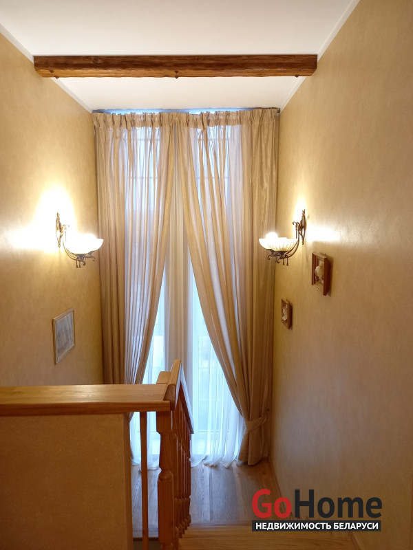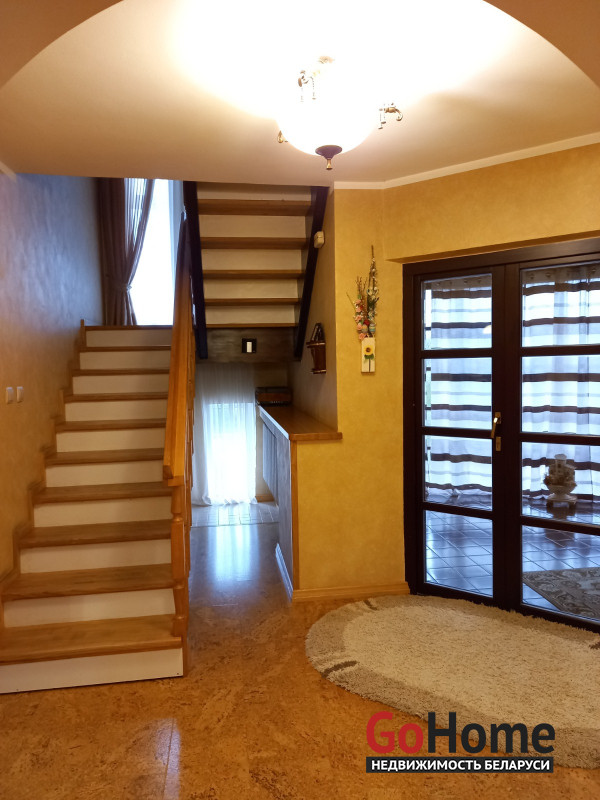 Добротный дом в классическом стиле в посёлке Береговой! Находится всего в 8 км от черты Гродно на ул. Полоцкой (центральной улице посёлка). Общая площадь здания - 281.7, общая площадь - 137.2, жилая - 91.4 м2. В доме 4 жилых комнаты, 3 санузла, 3 террасы. На первом этаже расположены кухня - 15.1 м2, гостиная - 36.6м2 и санузел с душевой кабиной - 4.1 м2. На втором этаже находятся три просторные комнаты - 21.8, 17.1 и 15.9 м2 и санузел с ванной - 4.9 м2. Материал стен: первый этаж - красный кирпич, второй этаж - газосиликат; облицованы кирпичем и отштукатурены. Цоколь обложен песчаником. Кровля - алюминиевый шифер и клинкерная черепица, навесы на террасах - финская черепица Katepal. Центральный вход с обогревом ступенек. Гаражные и въездные ворота на автоматике. Террасы и центральный вход украшает авторская ковка. При отделке дома использовались качественные натуральные материалы. Полы в комнатах - пробка и сибирская сосна. Лестница и межкомнатные двери из массива ясеня. Кухонный гарнитур из массива ясеня со столешницей из натурального камня. Кухонный фартук облицован итальянской плиткой ручной работы. Вытяжка и духовой шкаф SMEG, индукционная варочная поверхность Еlectrolux, посудомоечная машина AEG, двухдверный холодильник Samsung. Вся сантехника в доме импортного производства (производства Италии и Испании). Камин французской фирмы Supra обогревает гостиную и 2 комнаты на 2-м этаже. Во всем доме установлены качественные окна с немецким профилем. Канализация центральная. Есть ливневая канализация. Отопление газовое. Участок 11.9 соток правильной формы облагорожен и ухожен, с газоном и множеством декоративных насаждений. Есть теплица и дровник. Будущего собственника порадует наличие сауны с комнатой отдыха и санузлом на цокольном этаже. В 500 метрах от дома лес и Неман. Асфальтированный подъезд до самого дома. В шаговой доступности остановка общественного транспорта: несколько раз в день ходит городской автобус по маршруту 18. В самом посёлке есть отделение почты с мини-магазином. Отличный вариант для комфортной жизни! Звоните - будем рады выслушать Ваши предложения!
