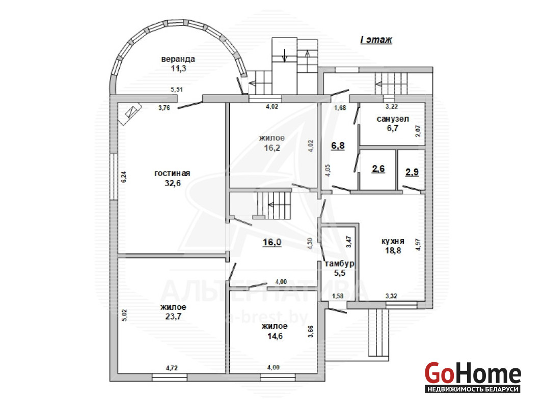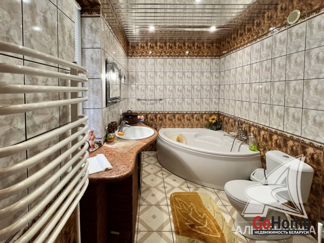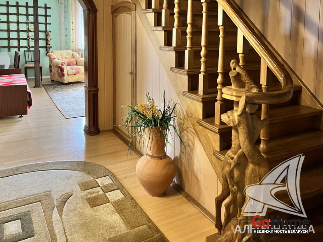 Жилой дом в г.Кобрине. 1994 г.п. 1 этаж, мансарда. Общ.СНБ - 276,8 кв.м, общ.- 255,8 кв.м, жил.- 139,5 кв.м, кух.- 18,8 кв.м., высота потолка - 2,60 м. Реконструкция 2021 г. 7 комнат.