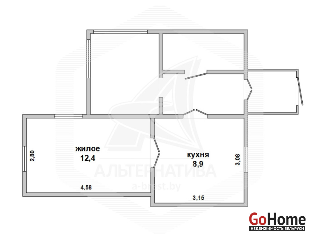 Тех. хар-ка продаваемой части дома: 1 комната, общ.СНБ - 22,7 кв.м, общ.- 21,4 кв.м, жил.- 11,6 кв.м, кух.- 8,9 кв.м.