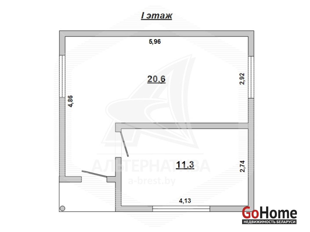 Дачный дом жилого типа в г.Бресте. 2000 г.п. 1 этаж, мансарда. Общ.СНБ - 47,9 кв.м, общ.- 47,9 кв.м, жил.- 36,6 кв.м, кух.- 11,3 кв.м. 2 комнаты.