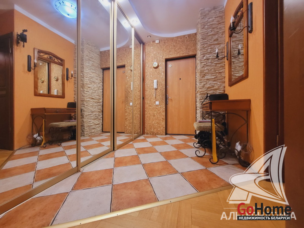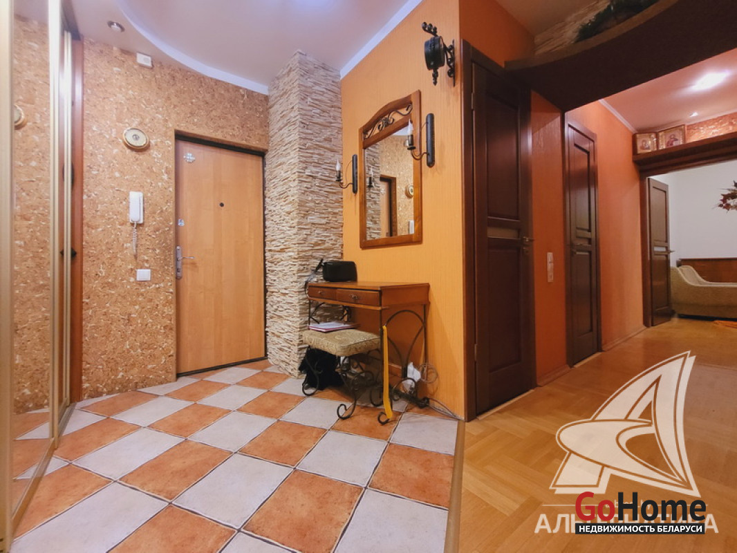 2-комнатная квартира, г. Брест, ул. Суворова, 2008 г.п., 4 / 9 панель, 56,3 / 53,7 / 29,4 / 8,9, санузел раздельный, лоджия застеклена, двухкамерные стеклопакеты, межкомнатные двери - массив, входная дверь металлическая, многоуровневые потолки из гипсокартона с разноплановой системой освещения, полы (положены на стяжку) - паркет (дуб) и плитка (в коридоре), стены оклеены обоями, декоративная отделка камнем (в кухне), в санузле современная плитка, заменена сантехника, чугунная ванна, телефон, домофон. Встроенный кухонный гарнитур (массив дуба), варочная панель, духовой шкаф, вытяжка, посудомоечная машина, шкаф-купе в прихожей. Квартира с хорошим ремонтом. Все окна выходят во двор. Тамбур на четыре квартиры. Чистый подъезд. Один пассажирский лифт. Дом расположен в глубине двора. Во дворе парковка для автомобилей. Лот - 223429