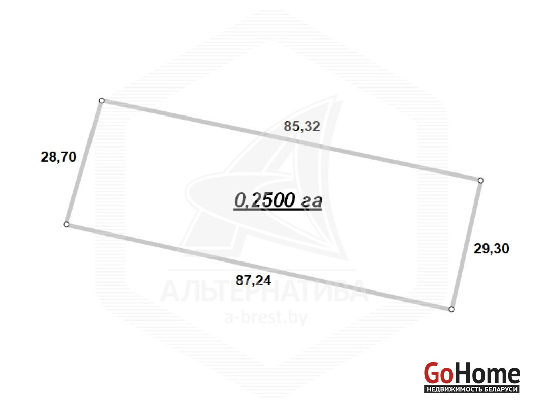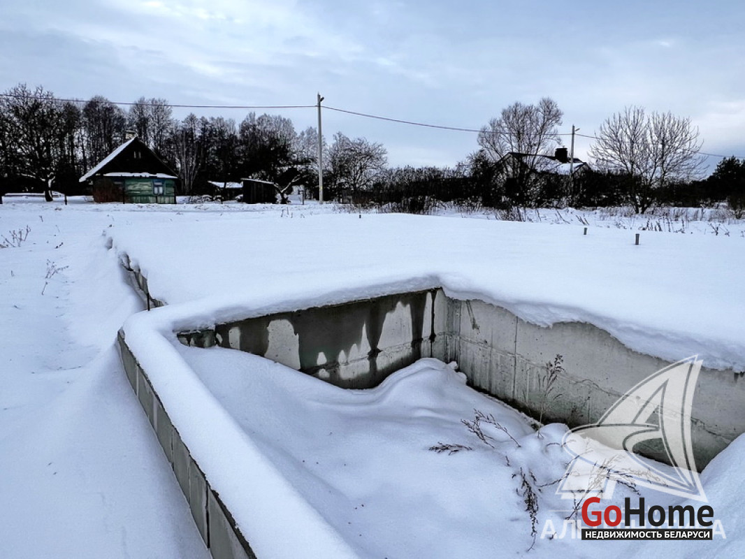 Незавершенное законсервированное капитальное строение на стадии фундамента в Брестском р-не. Общ.СНБ - 33,1 кв.м, общ.- 24,7 кв.м, жил.- 24,7 кв.м. 1 комната.
