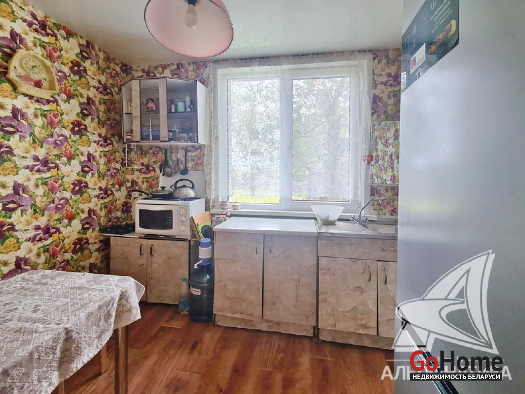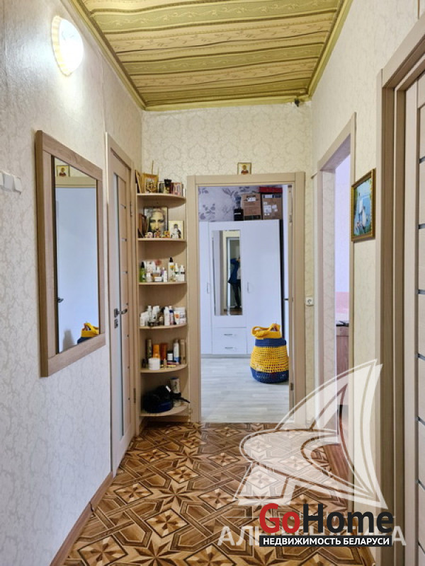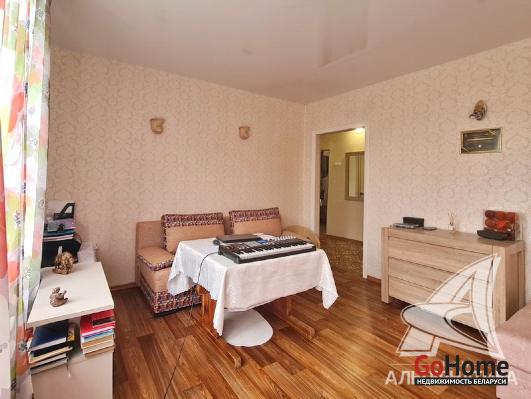 Квартира в блокированном жилом доме в Каменецком р-не. 1955 г.п. 1 этаж. Общ.СНБ - 77,1 кв.м, общ.- 55,5 кв.м, жил.- 39,2 кв.м, кух.- 6,3 кв.м. 3 комнаты, высота потолка - 2,70 м.