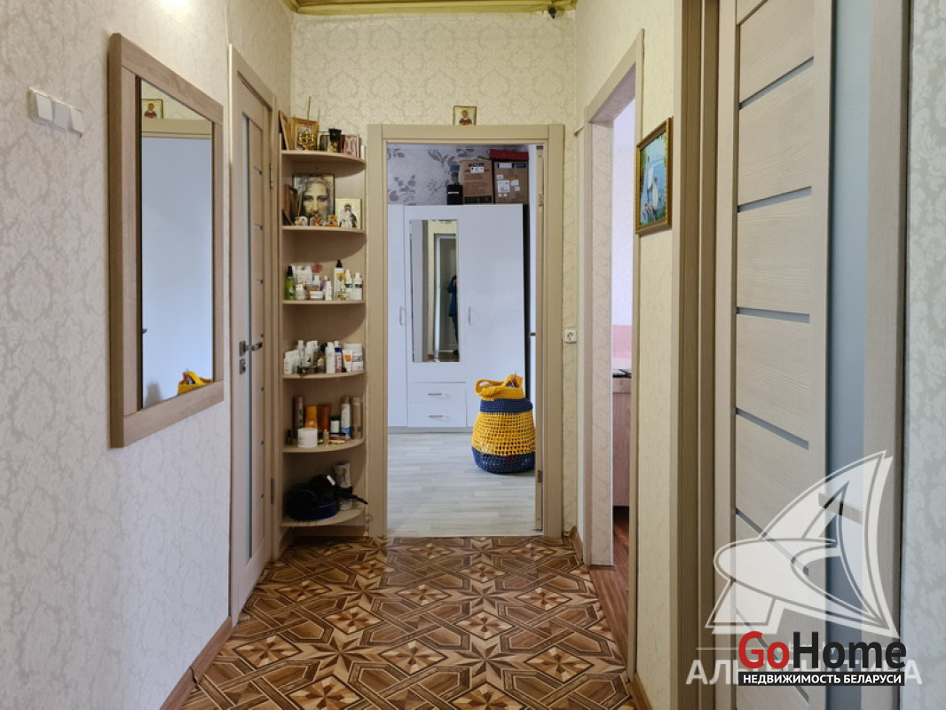 Квартира в блокированном жилом доме в Каменецком р-не. 1955 г.п. 1 этаж. Общ.СНБ - 77,1 кв.м, общ.- 55,5 кв.м, жил.- 39,2 кв.м, кух.- 6,3 кв.м. 3 комнаты, высота потолка - 2,70 м.