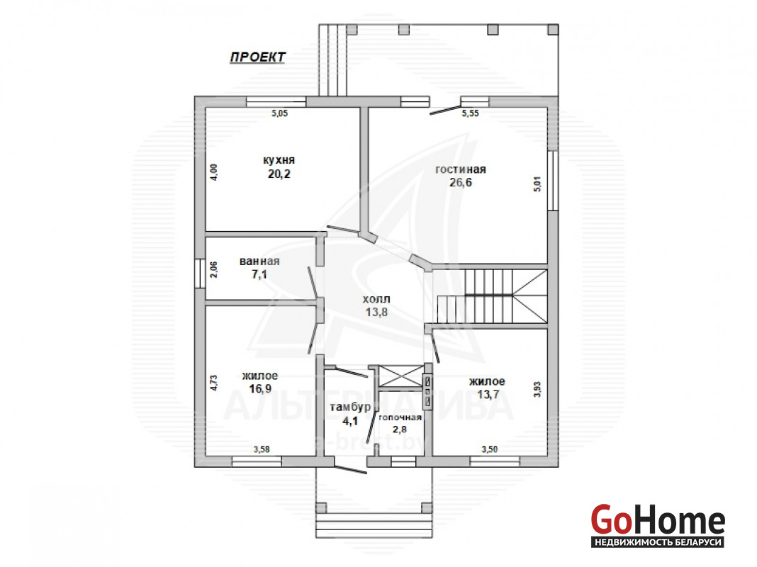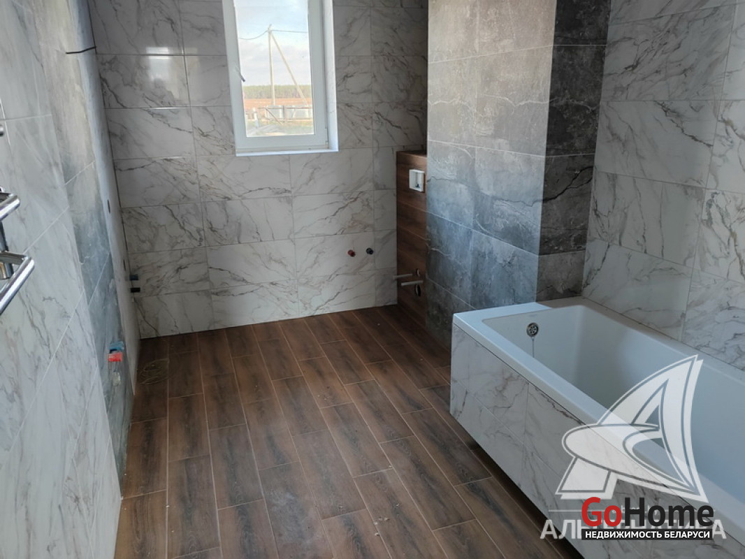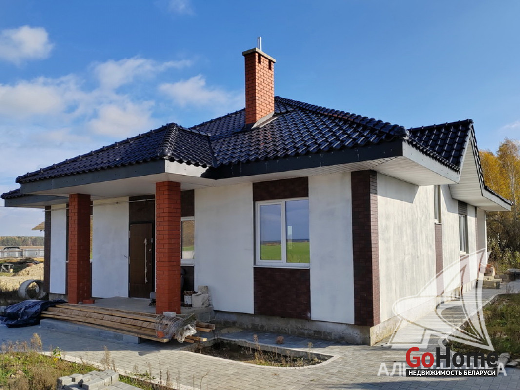 Жилой дом под чистовую отделку в Брестском р-не. 2022 г.п. 1 этаж, мансарда. Общ.СНБ - 110,18 кв.м, общ.- 105,43 кв.м, жил.- 57,36 кв.м, кух.- 20,2 кв.м. 3 комнаты.