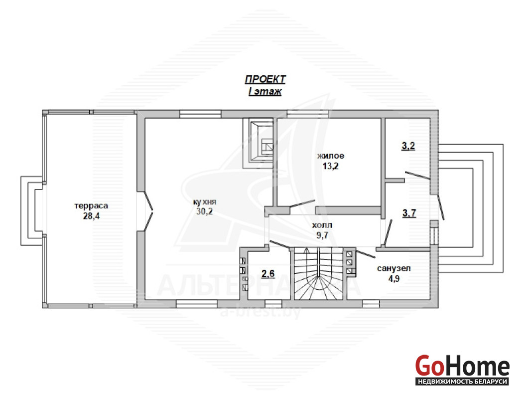 Коробка дачного дома жилого типа в Брестском р-не. 1 этаж, мансарда. Общ.СНБ - 135,3 кв.м, общ.- 123,5 кв.м, жил.- 40,4 кв.м, кух.- 30,28 кв.м. 3 комнаты.