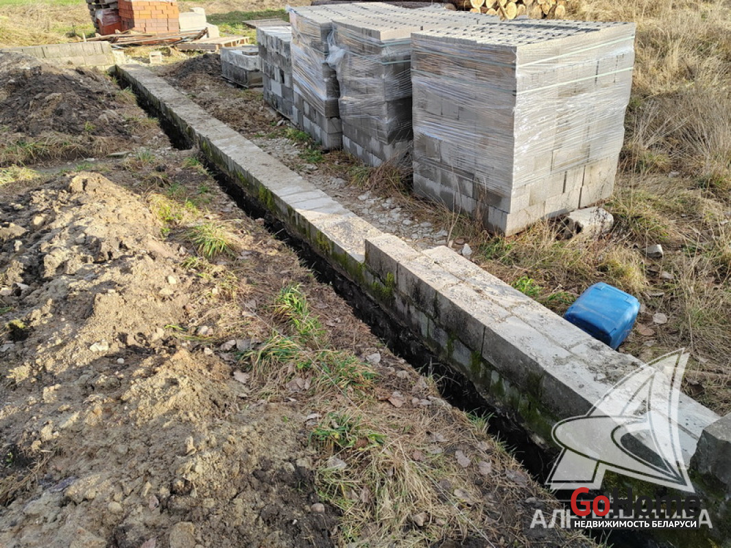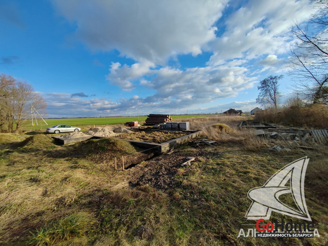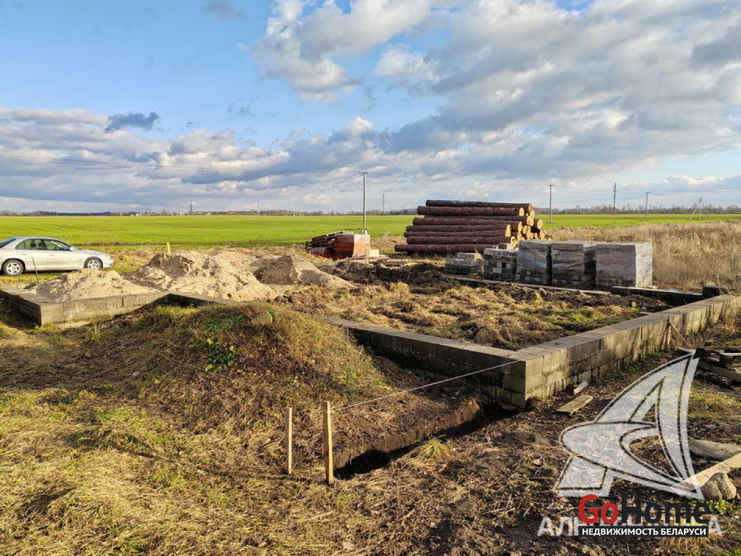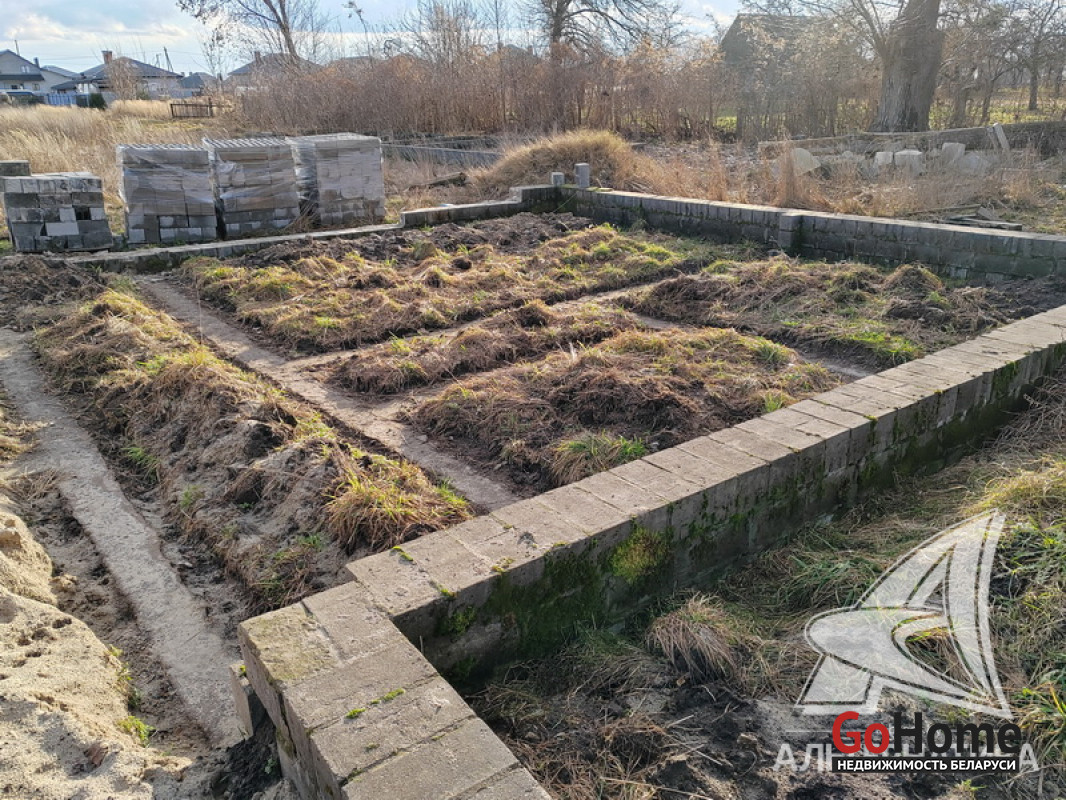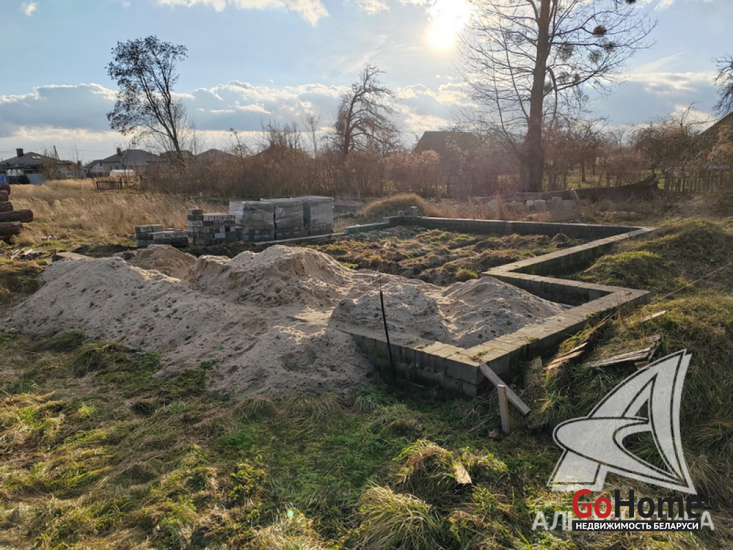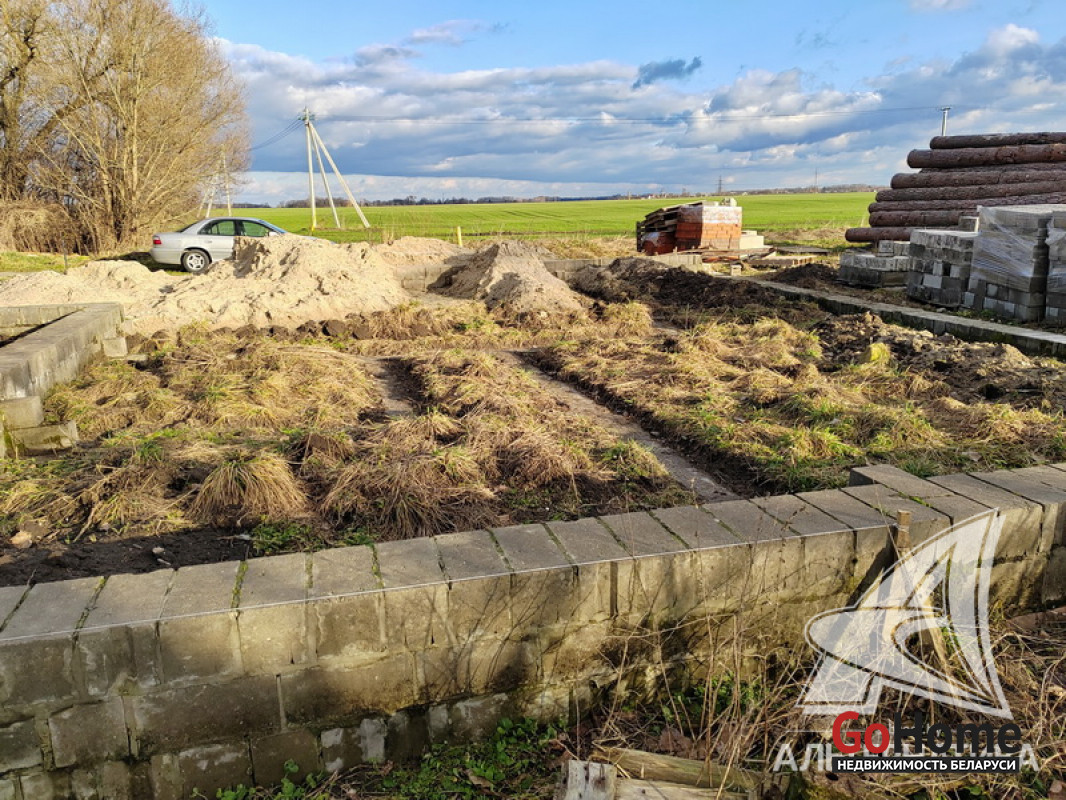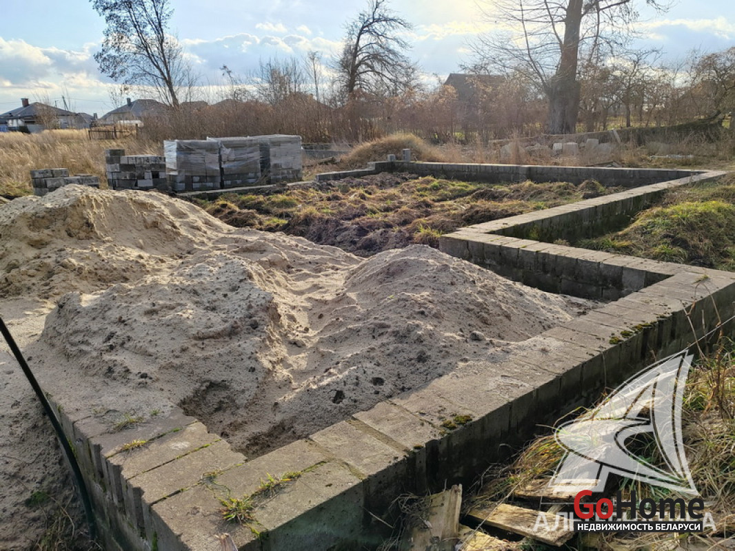 Незавершенное законсервированное капитальное строение на стадии фундамента в Брестском р-не. Общ.СНБ - 158,34 кв.м, общ.- 124,76 кв.м, жил.- 69,92 кв.м, кух.- 22,98 кв.м.