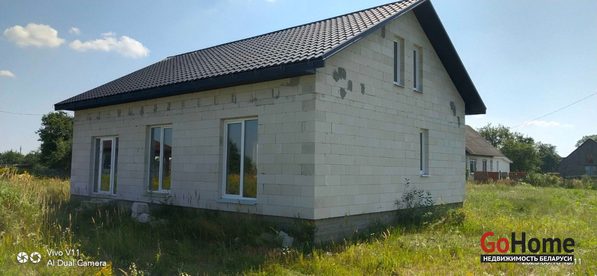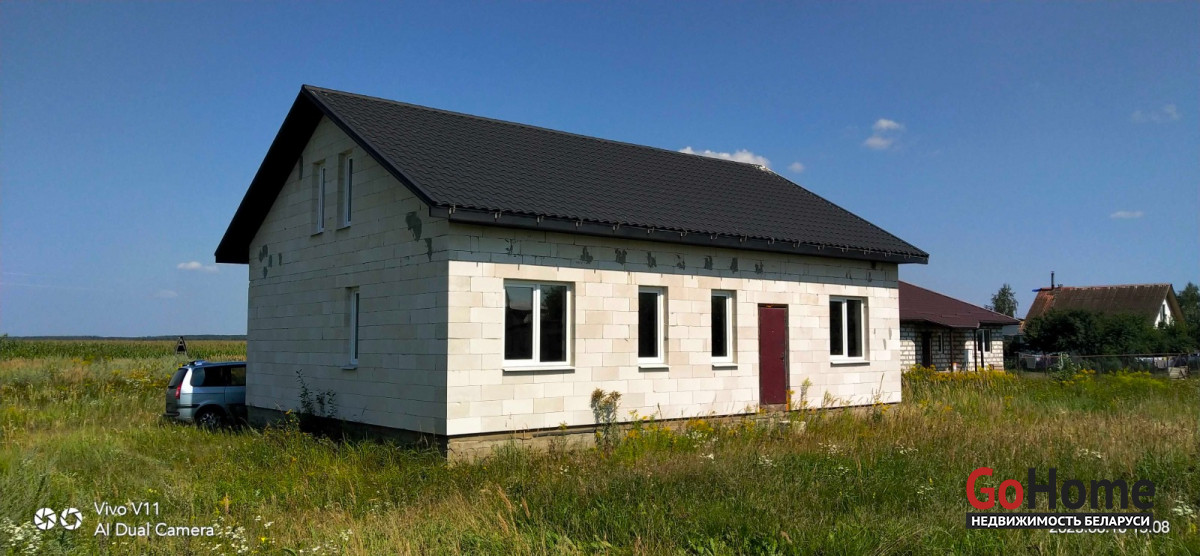 Не достроенный дом, газ вода по улице, школа детсад, маршрутка каждые пол часа, до электрички 3км подводит маршрутка,до трассы Минск-Москва М1 1км,8 км от Смолевич