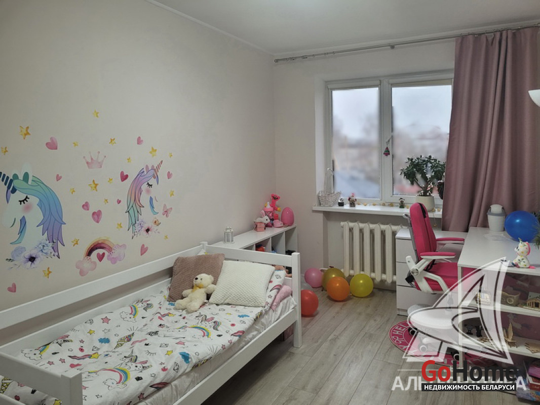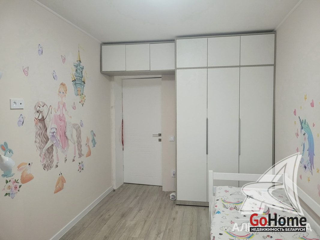 3-комнатная квартира, г. Брест, ул. Дубровская, 1991 г.п., 5 / 5 кирпич, 66,2 / 63,9 / 40,3 / 7,5, санузел раздельный, лоджия застеклена, подвал, стеклопакеты, межкомнатные двери - МДФ, входная дверь металлическая, натяжные потолки, полы - ламинат, стены оклеены обоями, в санузле современная плитка, заменена сантехника, заменен полотенцесушитель, заменены сантехнические трубы, инсталляция, телефон, домофон. Встроенный кухонный гарнитур, варочная панель, духовой шкаф, вытяжка, встроенный шкаф в детской комнате. Квартира с индивидуальными дизайнерскими решениями. Все окна выходят во двор. Чистый подъезд. Технический этаж. Во дворе игровая детская площадка. Лот - 230035