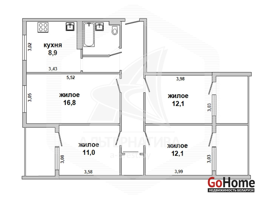 4-комнатная квартира, г. Брест, ул. Орловская, 1988 г.п., 3 / 9 панель, 86,5 / 80,3 / 52,0 / 9,0, санузел совмещенный, три лоджии застеклены, межкомнатные двери - массив, потолки - 2,5 м, полы - ковролин (положен на ДСП), в санузле современная плитка, заменена сантехника, заменены сантехнические трубы, телефон, домофон. Кухонный гарнитур. Мягкая и корпусная мебель по договоренности. Квартира с хорошим ремонтом. Один пассажирский лифт. Квартира расположена на две стороны. Лот - 230174