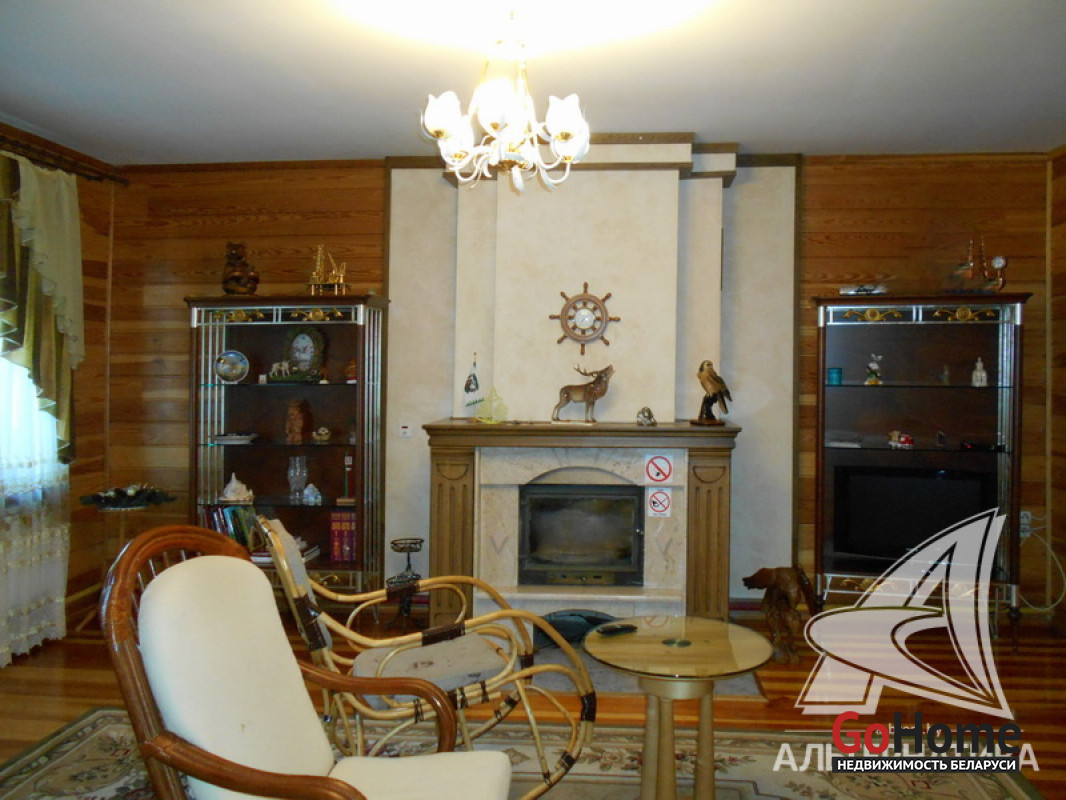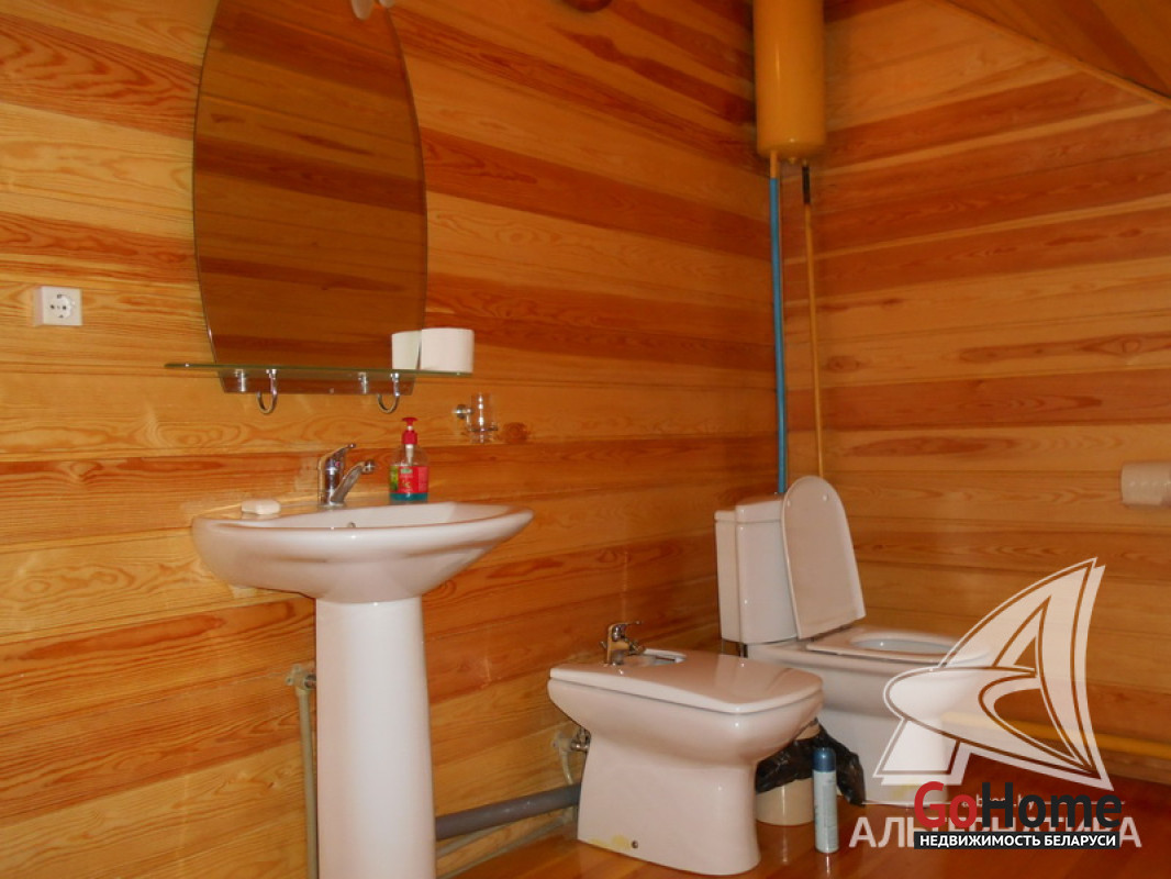 Коммуникации: отопление - котел на твердом топливе + камин, газ - привозной газовый баллон, водоснабжение - скважина и гидрофор, электричество - централизованное, канализация - автономная.