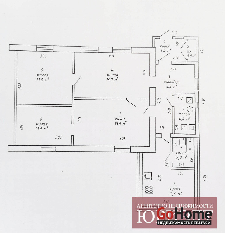 Фундамент - бетон, стены - кирпич, крыша - шифер. В доме 4 комнаты, кухня (12,6), топочная, с/узел-ванная, входной тамбур, коридор.
