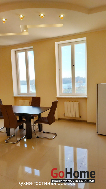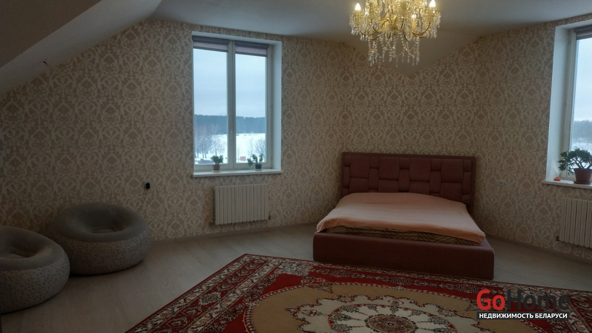 Одно из лучших мест Минска с потрясающим видом на Цнянское водохранилище из всех окон. Дом на первой береговой линии Цнянского водохранилища, представляющий собой отдельную 4-х этажную квартиру в 2-х квартирном блокированном жилом доме. К дому примыкают облагороженные береговая линия и парковая зона, находящиеся под постоянным государственным видеонаблюдением. Вся система отопления выполнена 100% из меди (вечная). Дом очень теплый. Имеется напольный газовый котел 2*40кВт, бойлер 300л., твердотопливный чугунный резервный котел. Циркуляция горячей воды по всему дому, водяной теплый пол под плиткой. На всех уровнях разведена система центрального пылесоса. В доме 9-ть жилых просторных, светлых комнат 25-50м.кв. высотой 3,2м. Имеются вспомогательные помещения. Штукатурка всех стен и откосов выполнена идеально - купюра не пролезет. Выполнен качественный ремонт, не нуждающийся в переделке. Имеется 3-и с/узла, сауна с купелью, комнаты отдыха, гараж на 2-е машины. Вода с крыши отводится в центральную ливневую канализацию.