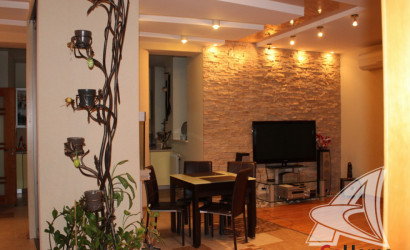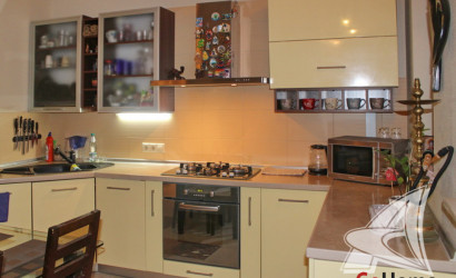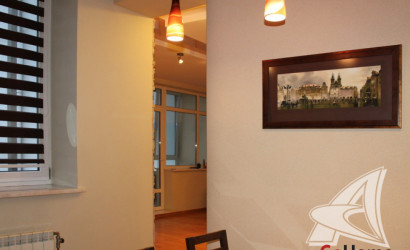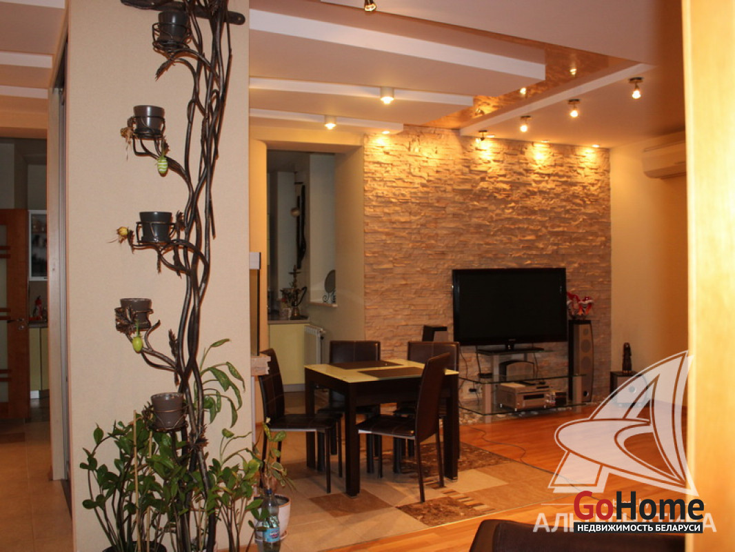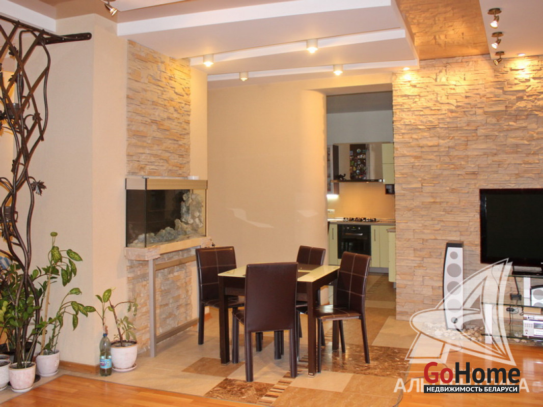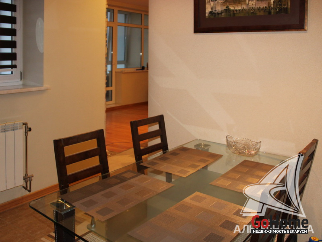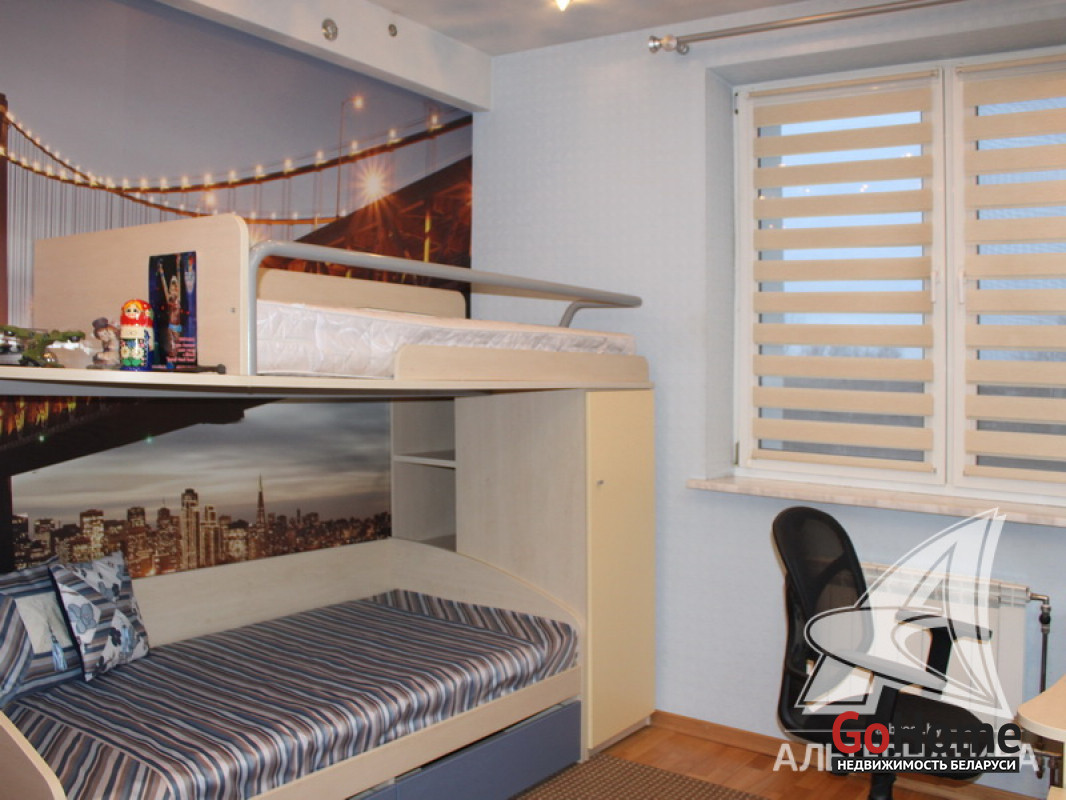 3-комнатная квартира, г. Брест, ул. Карьерная, 2005 г.п., 4 / 5 кирпич, 96,7 / 94,3 / 55,0 / 12,2, санузел совмещенный, лоджия застеклена, подвал с окном (в цокольном этаже), стеклопакеты, межкомнатные двери - массив, входная дверь - массив и металлическая, комбинированные многоуровневые натяжные потолки (2,90 м), полы - паркет (клен с мрамором), стены выравнены под покраску, декоративная отделка штукатуркой, отделка камнем, имитация кладки, в санузле современная плитка, ванна, джакузи, смесители Hansgrohe, инсталляция, подогрев пола, кондиционер, телефон, домофон. Встроенный кухонный гарнитур, бытовая техника Ariston (варочная панель, духовой шкаф, вытяжка, посудомоечная машина), обеденная группа из натурального дерева и стекла (Италия), диваны из натурально кожи (в гостиной), шкафы-купе (в коридоре, в детской комнате), гардеробная (в спальне), постирочная со стеллажами, подоконники из белого мрамора. Квартира с индивидуальными дизайнерскими решениями. Окна выходят на зеленую зону. Тамбур на одну квартиру. Дом оборудован сигнализацией. Лот - 230424