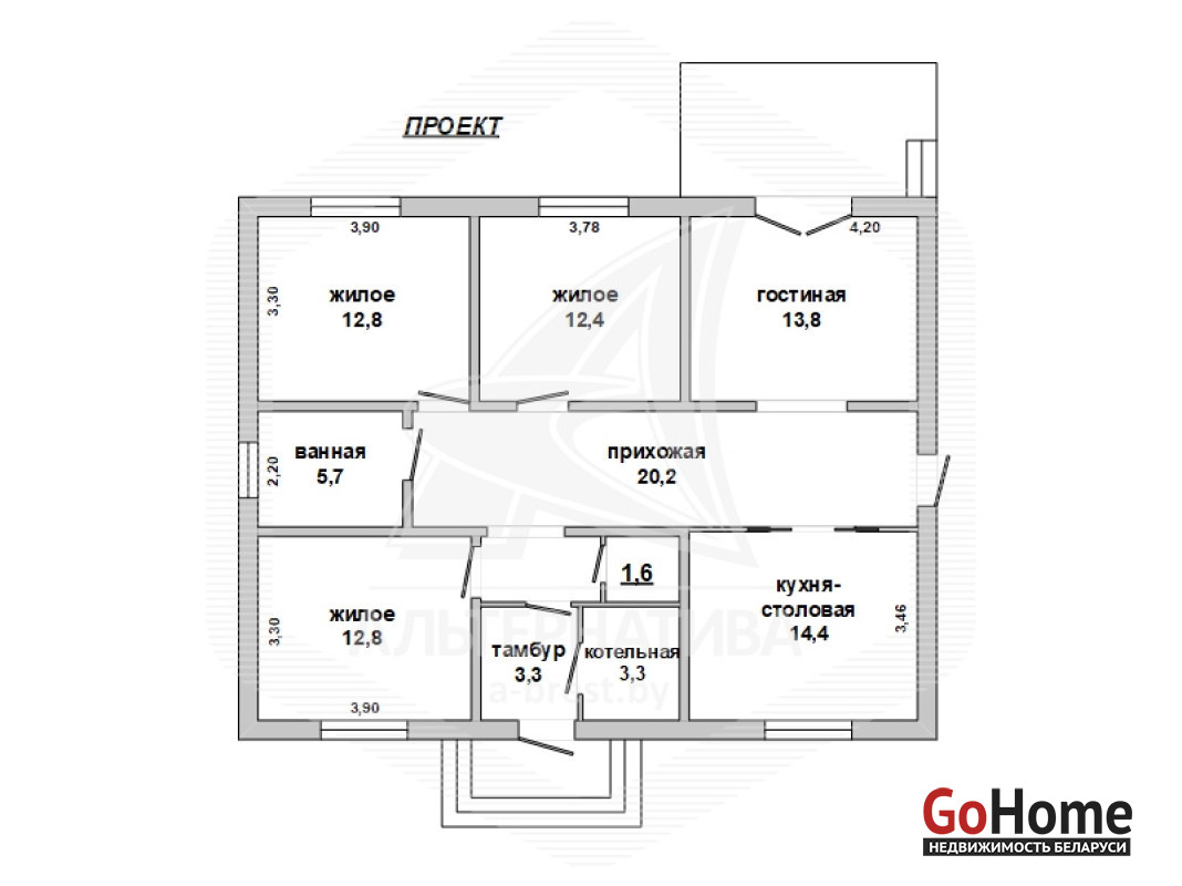 Коробка дачного дома жилого типа в Брестском р-не. 1 этаж. Общ.СНБ -120,1 кв.м, общ.- 106,9 кв.м,
