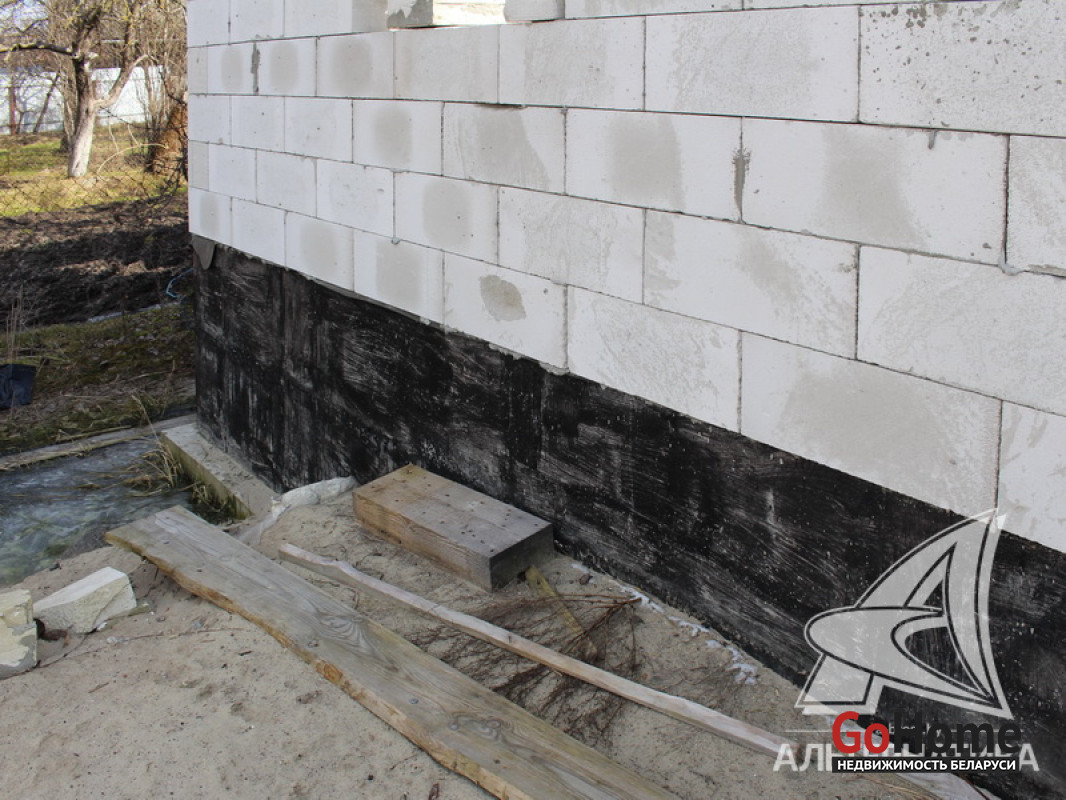 Стены: материал - газосиликатный блок. Фундамент: ленточный монолитный, материал - бетон.