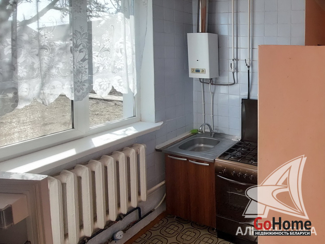 Коммуникации: отопление - газовый котел, газ - централизованный (в доме), водоснабжение - централизованный водопровод, электричество - централизованное, канализация - централизованная.