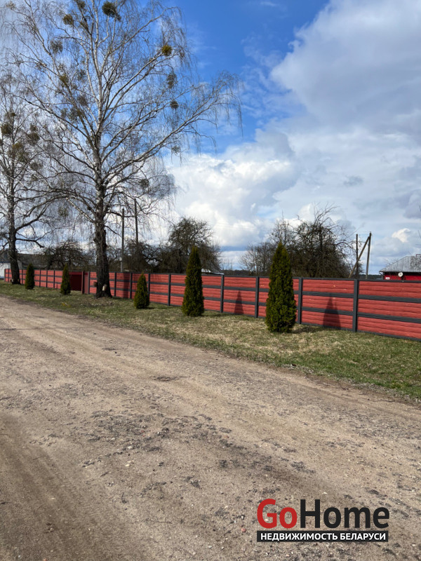 Большая территория 60 соток полностью со всех сторон огорожена бетонным забором .