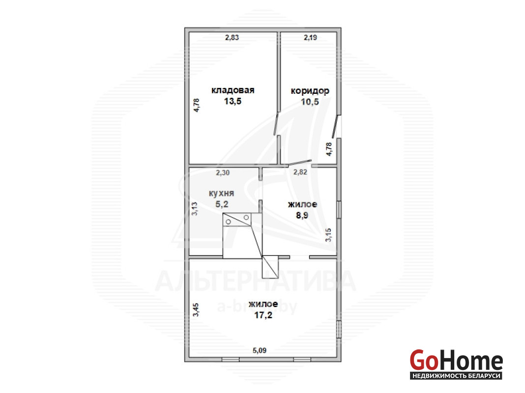 Жилой дом в Брестском р-не. 1948 г.п. 1 этаж. Общ.СНБ - 55,3 кв.м, общ.- 55,3 кв.м, жил.- 26,1 кв.м, кух.- 5,2 кв.м. 2 комнаты.
