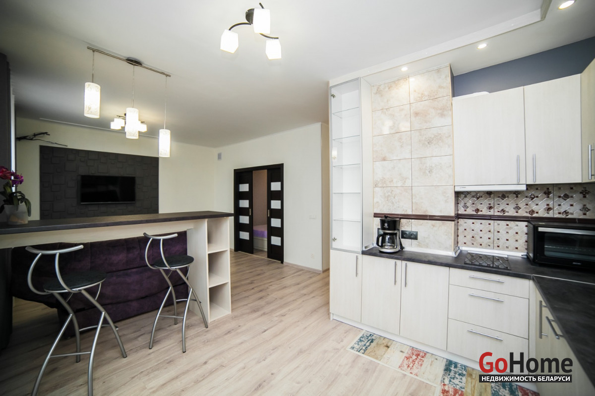 В квартире современная кухня, через кухню осуществляется выход на просторную лоджию. Большая кровать с ортопедическим матрасом идеально подойдет для отдыха. Апартаменты расположены в экологически чистом районе города рядом с Грушевским сквером.