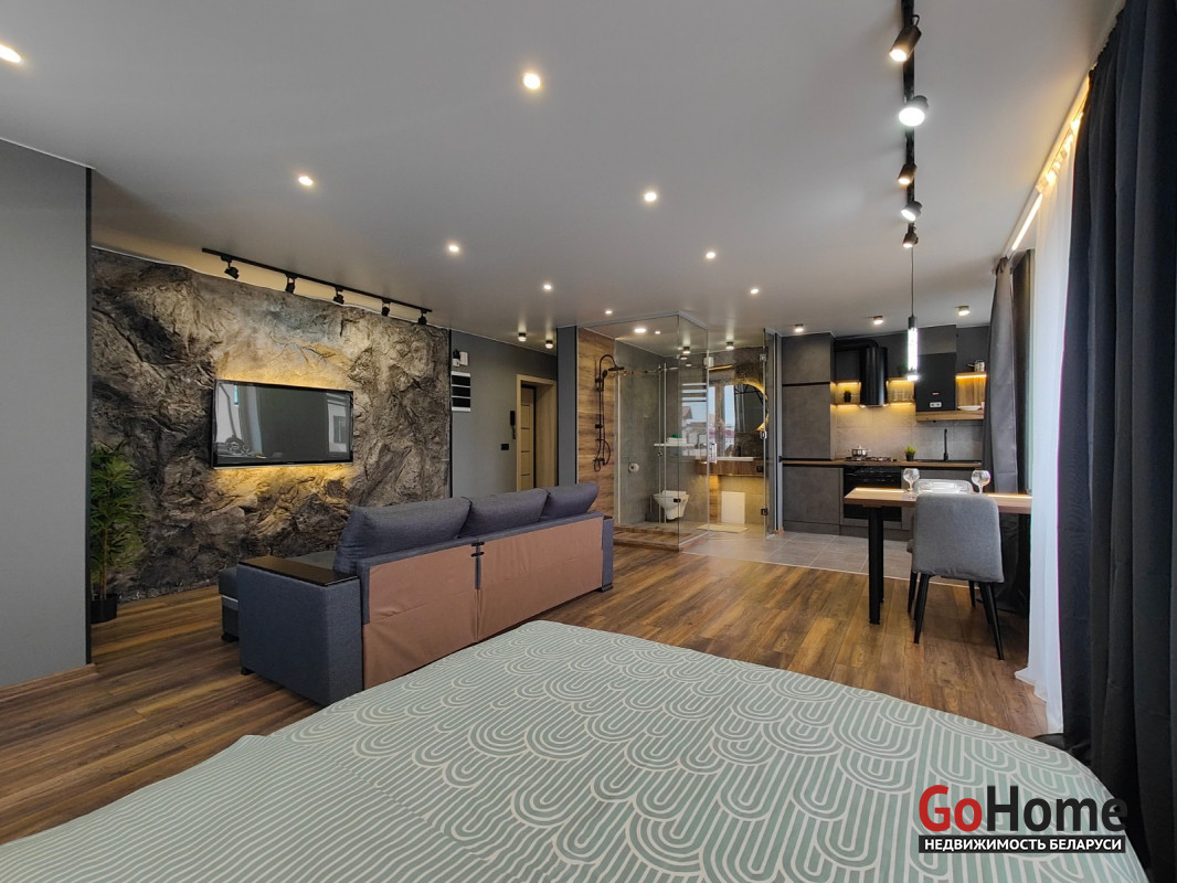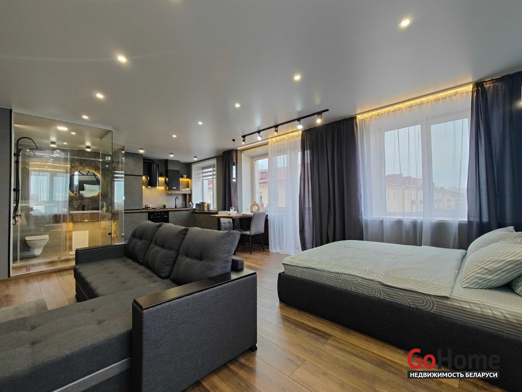 Стильный современный дизайн. Удобная и функциональная мебель гармонично «встроена» в пространство квартиры, не нарушая ее просторности. Элементы декора создают здесь настроение романтичности и искренности. Так же в апартаментах имеется: телевизором с плоским экраном и кабельными каналами; полностью оборудованная кухня с духовым шкафом, микроволновой печью, столовыми приборами и всем необходимым кухонным инвентарём, необходимым для приготовления различных блюд; постельные принадлежности в отличном состоянии; имеется жидкое мыло, шампунь, также гости могут попить чай.