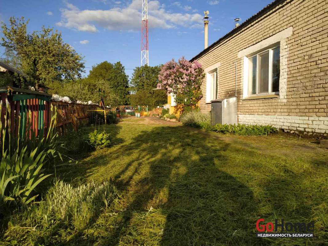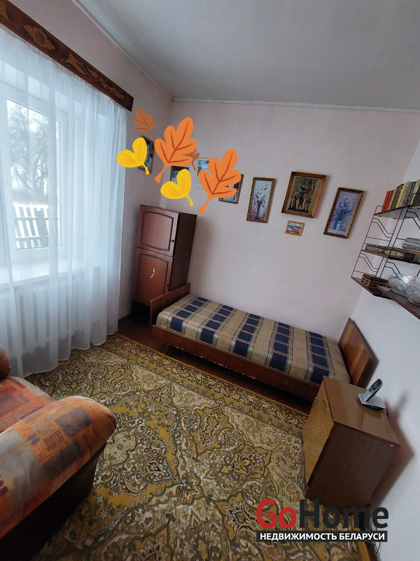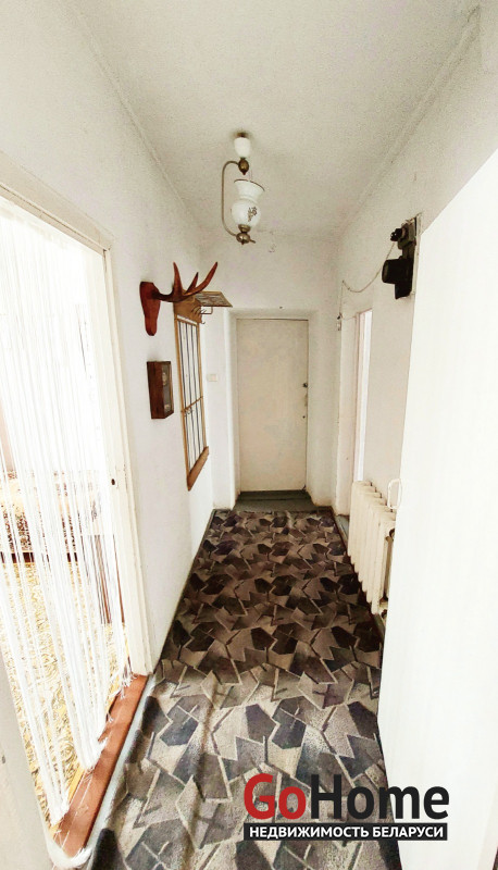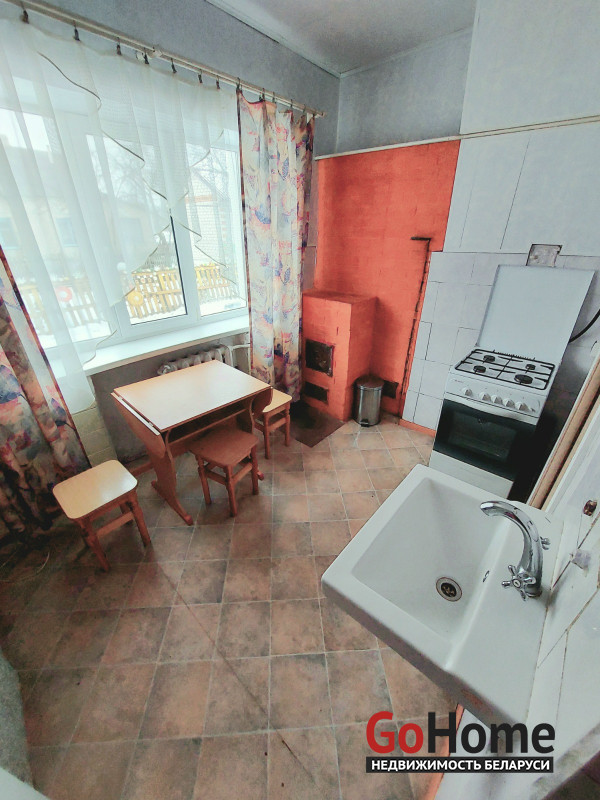 Квартира ( полдома) со всеми удобствами и отдельным входом в двухквартирном кирпичном доме. Есть 3 жилые комнаты и одна летняя ( веранда), кладовка и большой подвал. В доме центральные канализация и отопление, горячая вода посредством бойлера и разведена в кухню и ванную комнату.