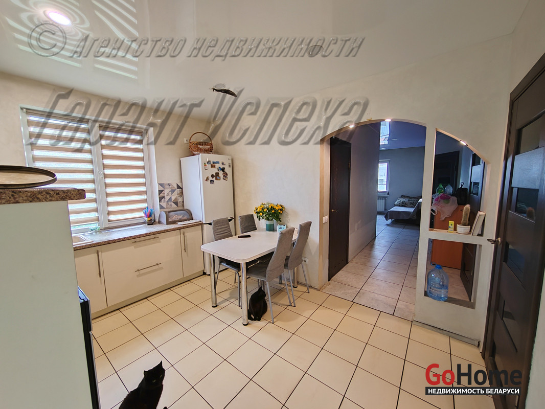 Общая площадь строения составляет 130 кв.м, жилая – 40,3 кв.м. В доме имеются три жилых комнаты, кухня (11 кв.м), с выходом на террасу из поликарбоната с мягкими окнами, совмещенный санузел (5,1 кв.м), просторная прихожая и топочная. В доме произведён современный ремонт: полы – плитка и ламинат, потолок в комнатах и прихожей выполнен из гипсокартона, натяжной - в остальных помещениях, стены в зависимости от помещений оклеены обоями, облагорожены «венецианской» штукатуркой или жидкими обоями. Для увеличения жилого пространства на мансардном этаже имеется утеплённое дополнительное помещение общей площадью около 55 метров. Для организации высокоскоростного интернета в дом заведён оптоволоконный кабель.
