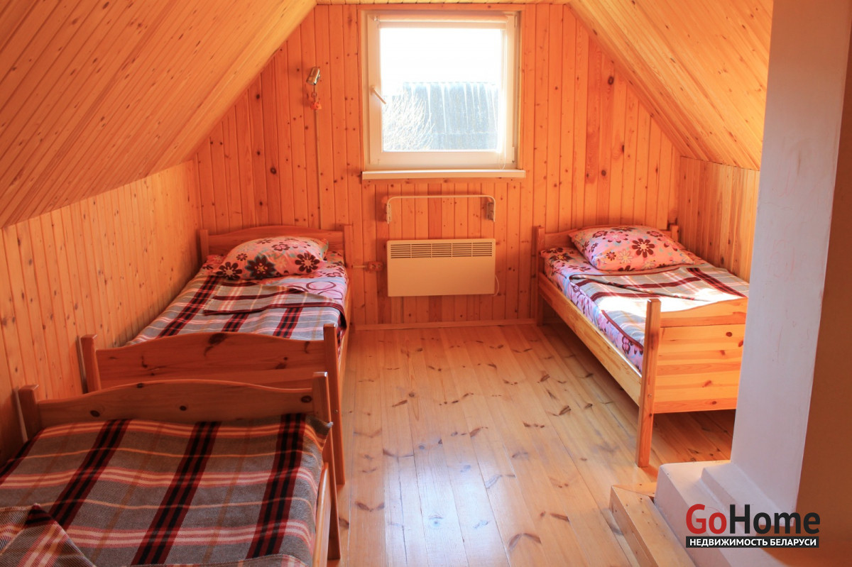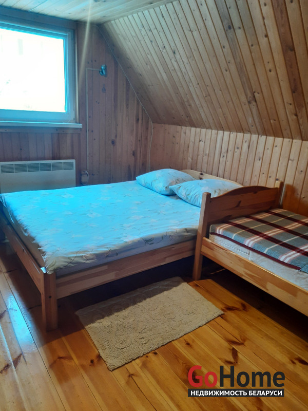 В доме есть кухня, где есть все необходимое для приготовления еды (посуда, плита, холодильник); гостиная со столовой зоной; душ и санузел; парная, стиральная машина. Второй этаж:спальная зона с 2-мя комнатами, каждая комната рассчитана на 3-х человек. На территории парковка для 2-х автомобилей.
