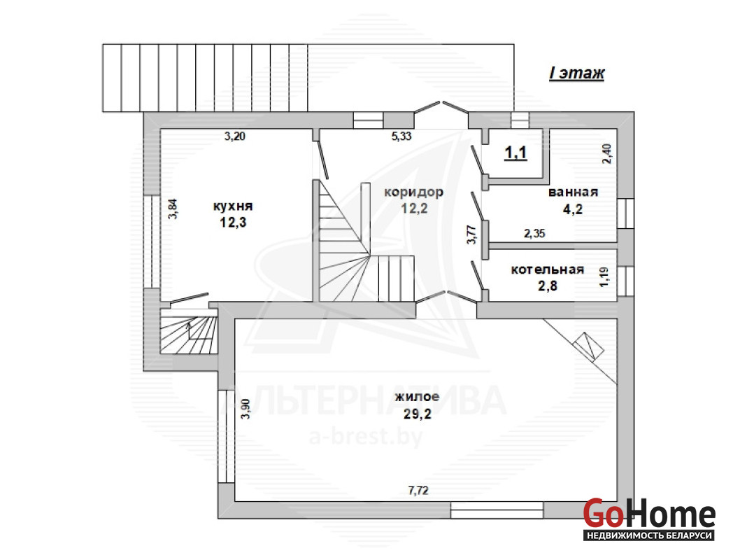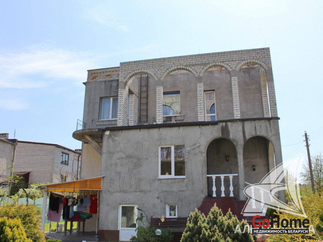 Жилой дом в г.Бресте. 1990 г.п. 1 этаж, мансарда, цокольный этаж. Общ.СНБ - 179,6 кв.м, общ.- 113,0 кв.м, жил.- 69,3 кв.м, кух.- 12,3 кв.м. 5 комнат, высота потолка - 2,70 м.