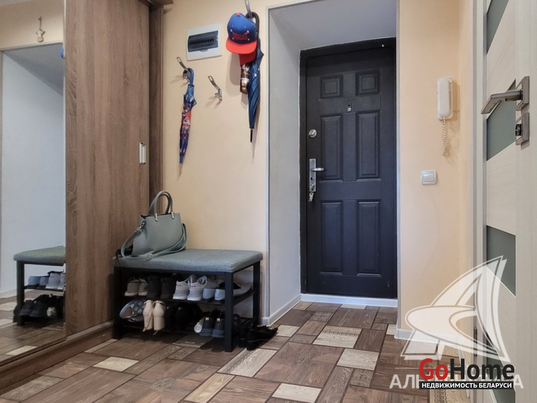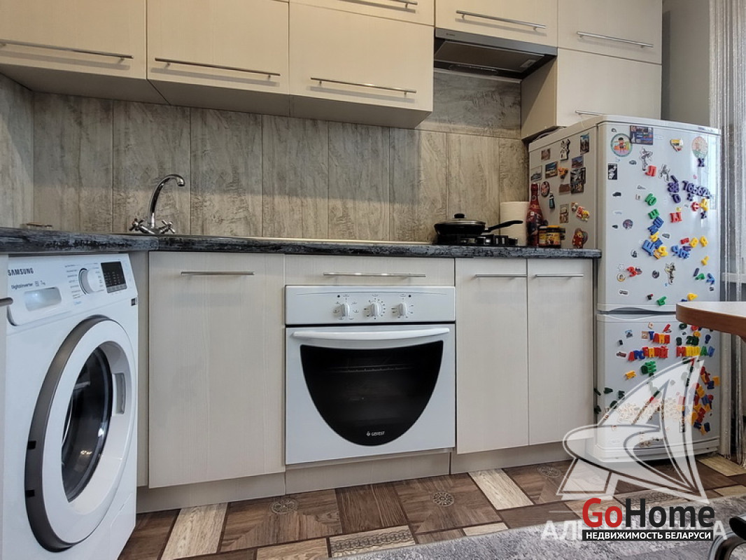 1-комнатная квартира, г. Брест, пр-т Машерова, 1974 г.п., 5 / 5 кирпич, 34,4 / 34,4 / 19,6 / 7,0, санузел раздельный, стеклопакеты, межкомнатные двери - шпон, входная дверь металлическая, потолки - снежка, полы - линолеум, стены окрашены, в санузле современная плитка, заменена сантехника, заменен полотенцесушитель, чугунная ванна, проведена новая электропроводка, телефон, домофон. Кухонный гарнитур, варочная поверхность, духовой шкаф, вытяжка, шкаф-купе (в прихожей), сантехническое оборудование и тумба под раковину, остальная мебель по договоренности. Квартира с хорошим ремонтом. Чистый подъезд. Капитальный ремонт дома 2023 г. Произведен ремонт крыши. Утепление дома шубой. Лот - 231409