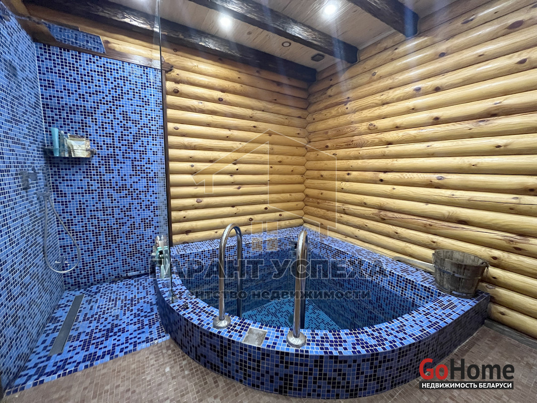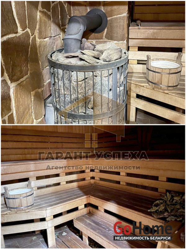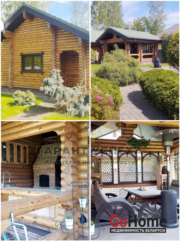 Дворовая территория расположила на себе не только уютный дом, но и летную кухню, шикарную беседку с мангалом и барбекю, баню с бассейном. Все это выстроено из бруса.