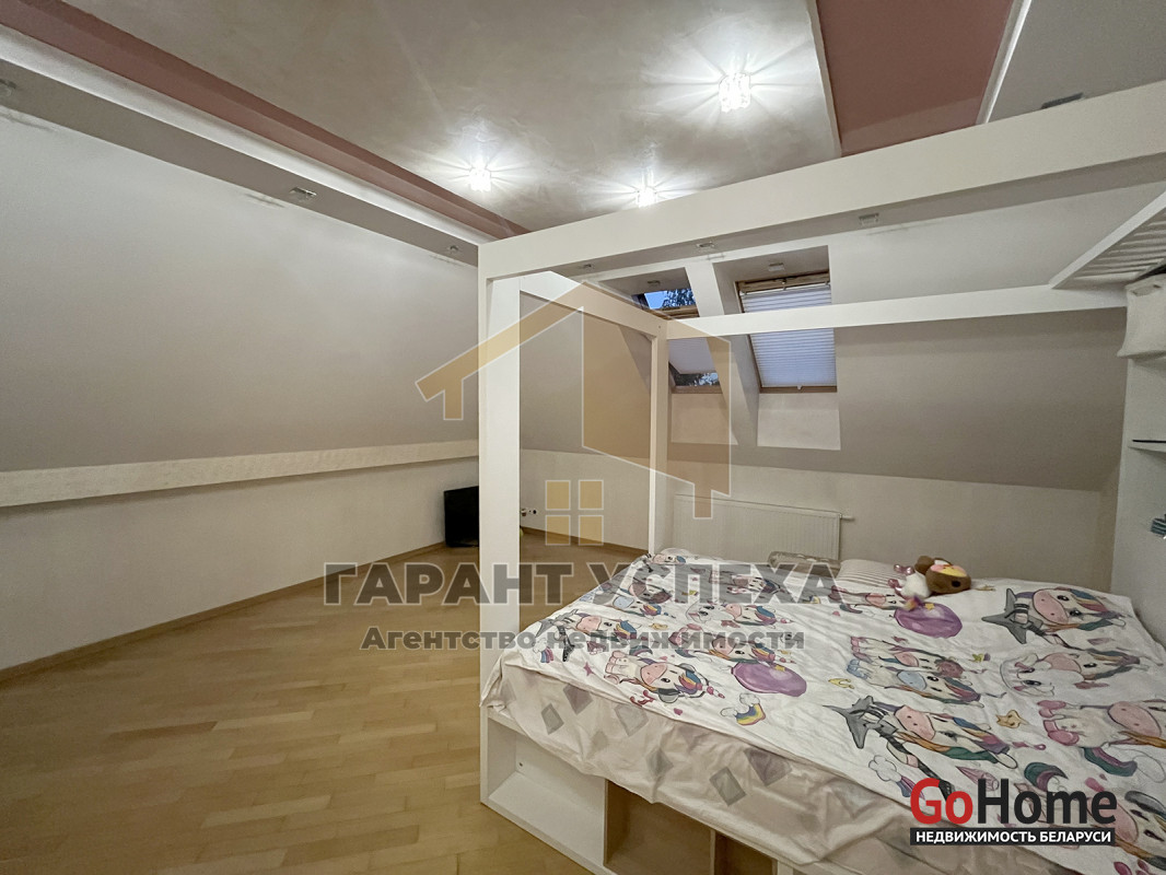 На мансардном этаже расположились 3 спальные комнаты, лестничный холл и просторный ванная комната 18,9 м2. Имеется балкон с коваными перилами.