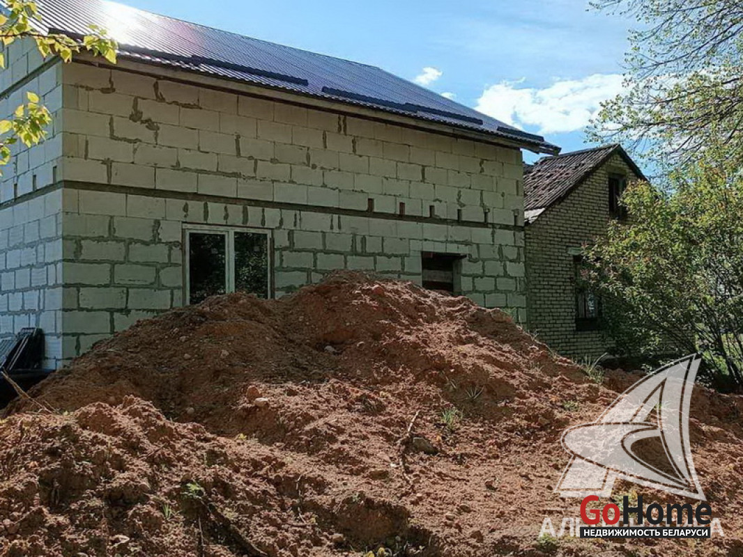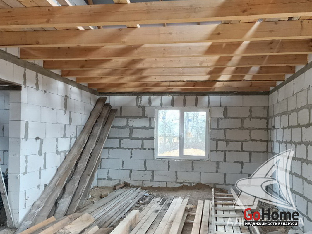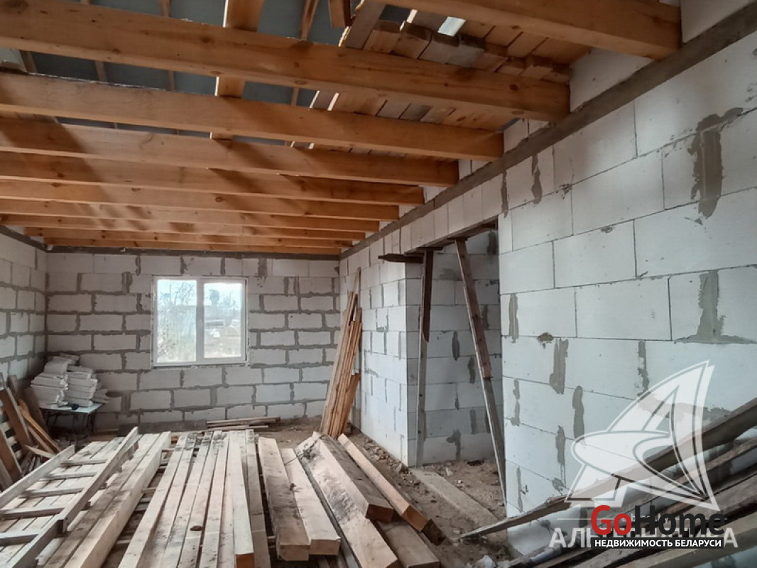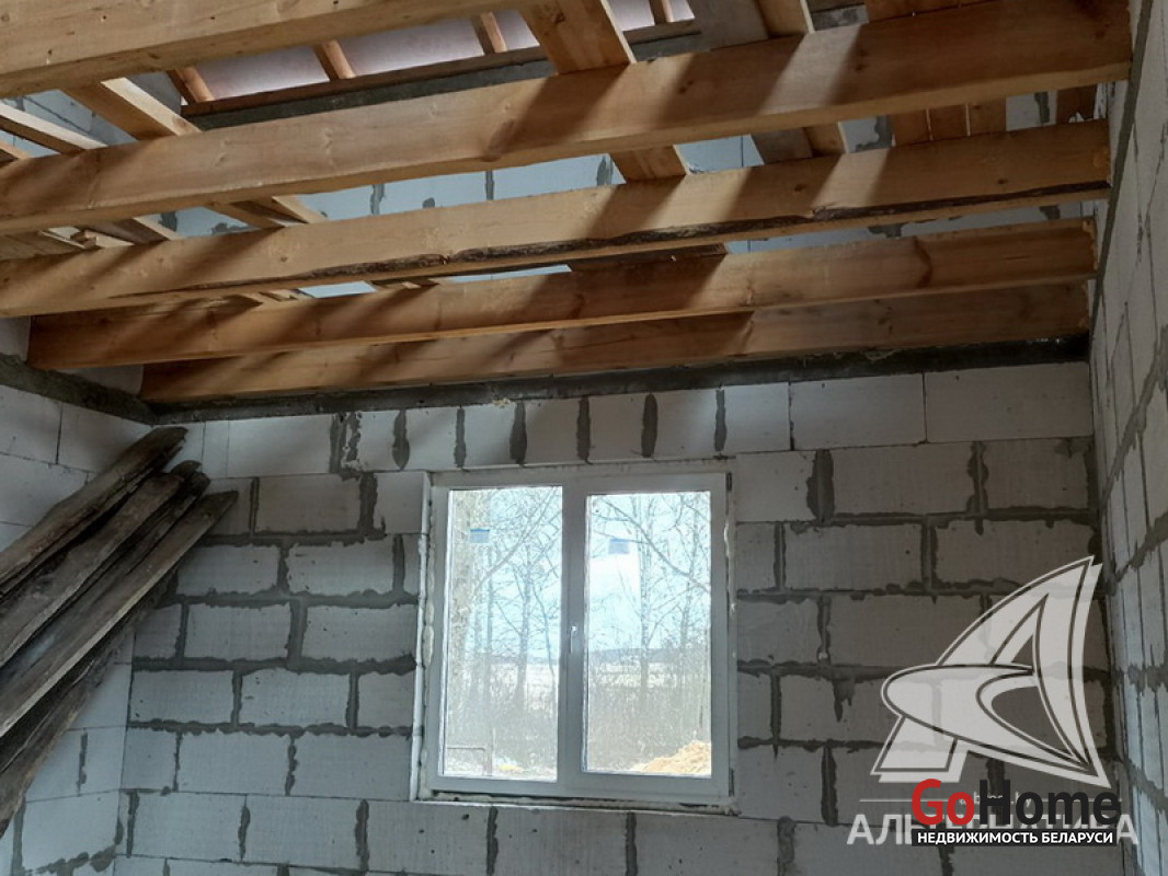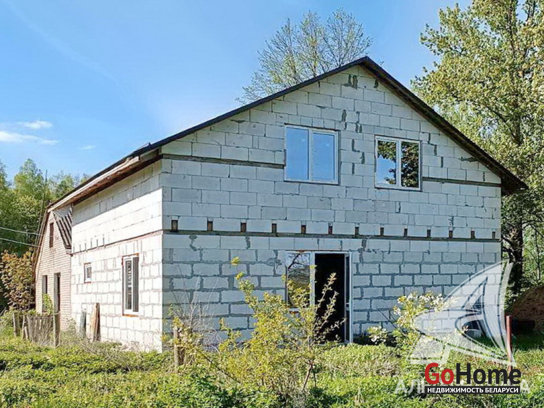 Коробка жилого дома в Каменецком р-не. 1994 г.п. 1 этаж, мансарда. Общ.СНБ - 216,56 кв.м, общ.- 159,1 кв.м, жил.- 52,93 кв.м, кух.- 16,51 кв.м. 3 комнаты, высота потолка - 2,55 м.