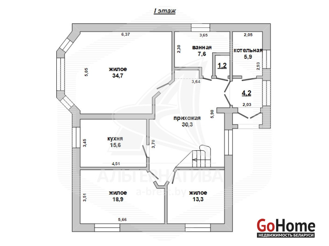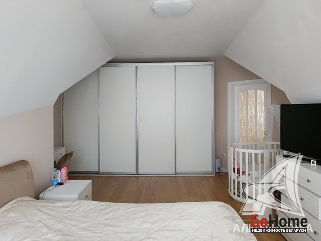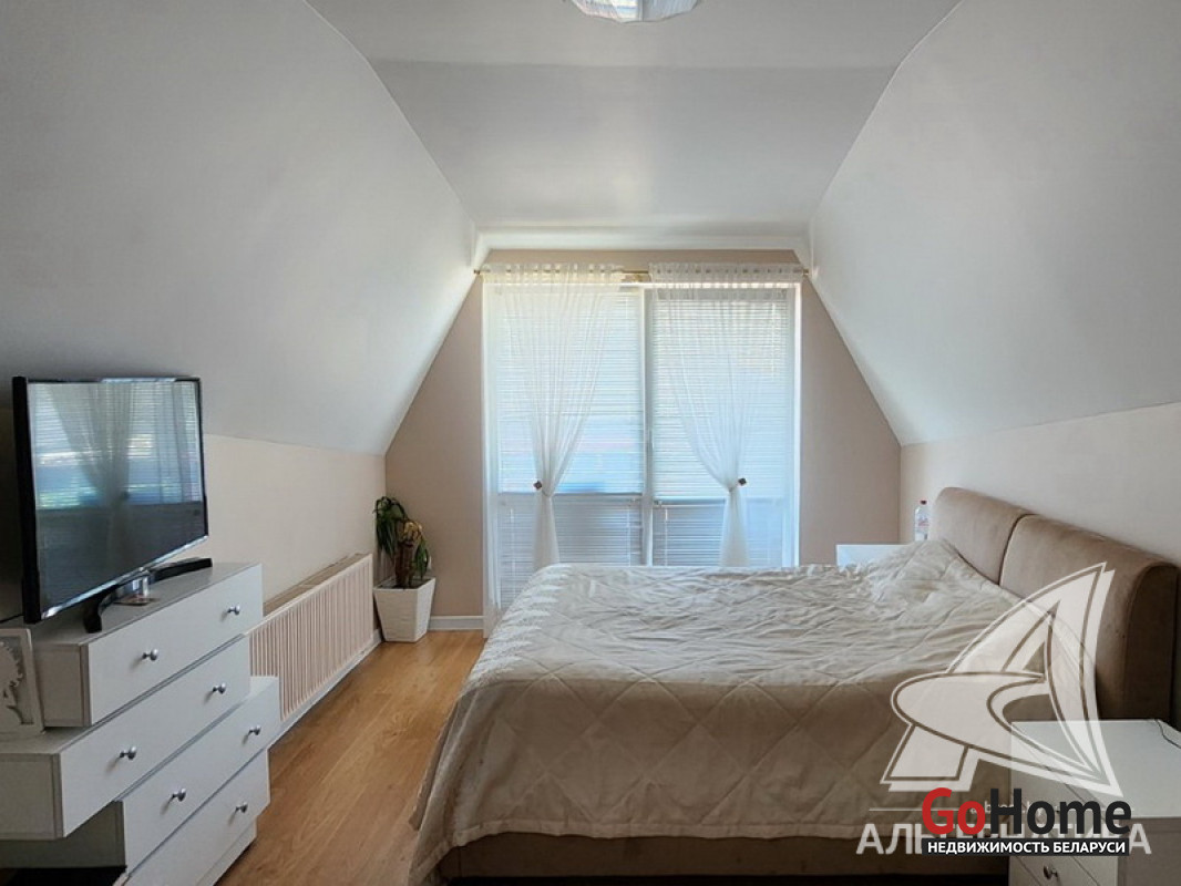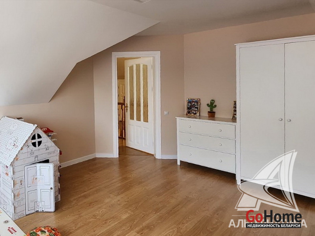 Жилой дом в г.Бресте.1 этаж, мансарда. Общ.СНБ - 224,6 кв.м, общ.- 223,4 кв.м, жил.- 116,6 кв.м, кух.- 15,6 кв.м. 5 комнат, высота потолка - 2,80 м.