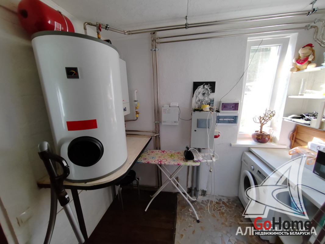Коммуникации: отопление - газовый котел, газ - централизованный (в доме), водоснабжение - скважина и гидрофор, электричество - централизованное, канализация - автономная.