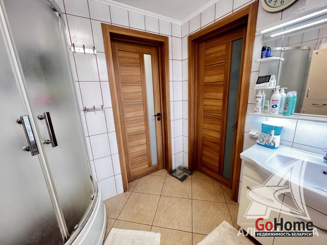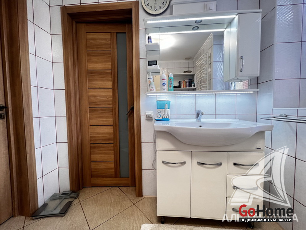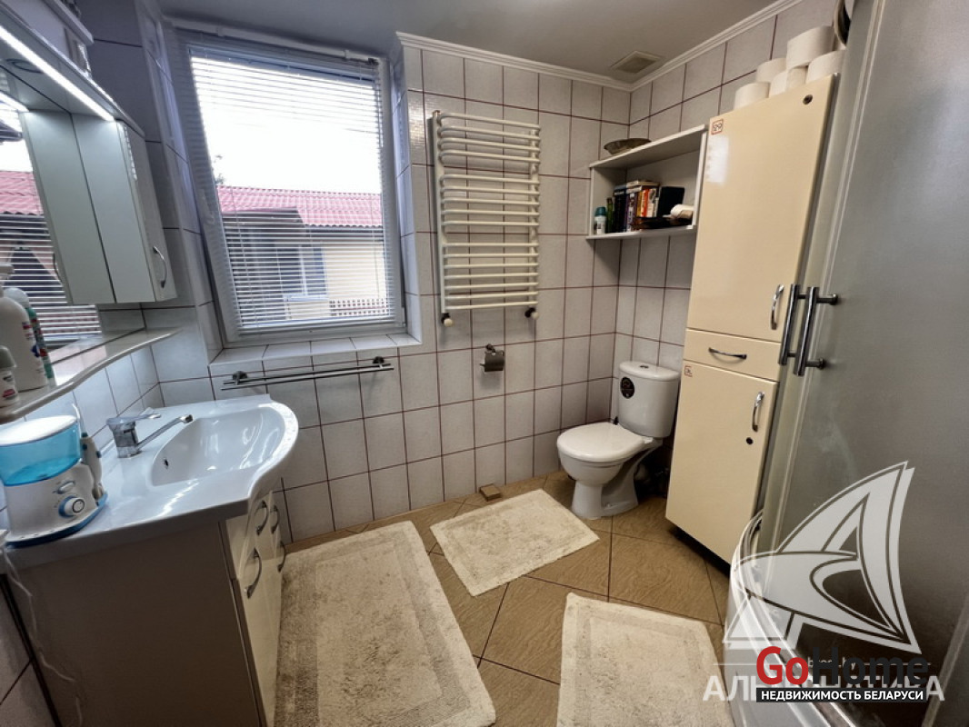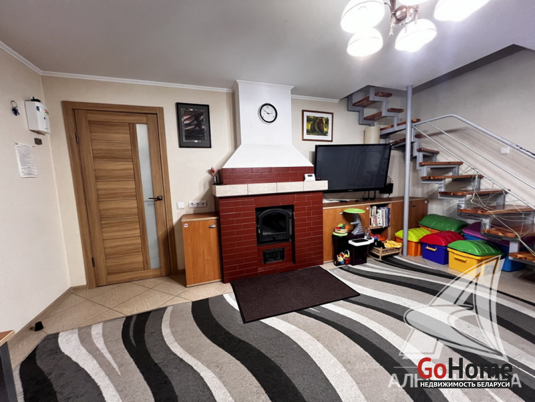 Коммуникации: отопление - газовый котел, газ - централизованный (в доме), водоснабжение - централизованный водопровод, скважина и гидрофор, электричество - централизованное, канализация - централизованная.
