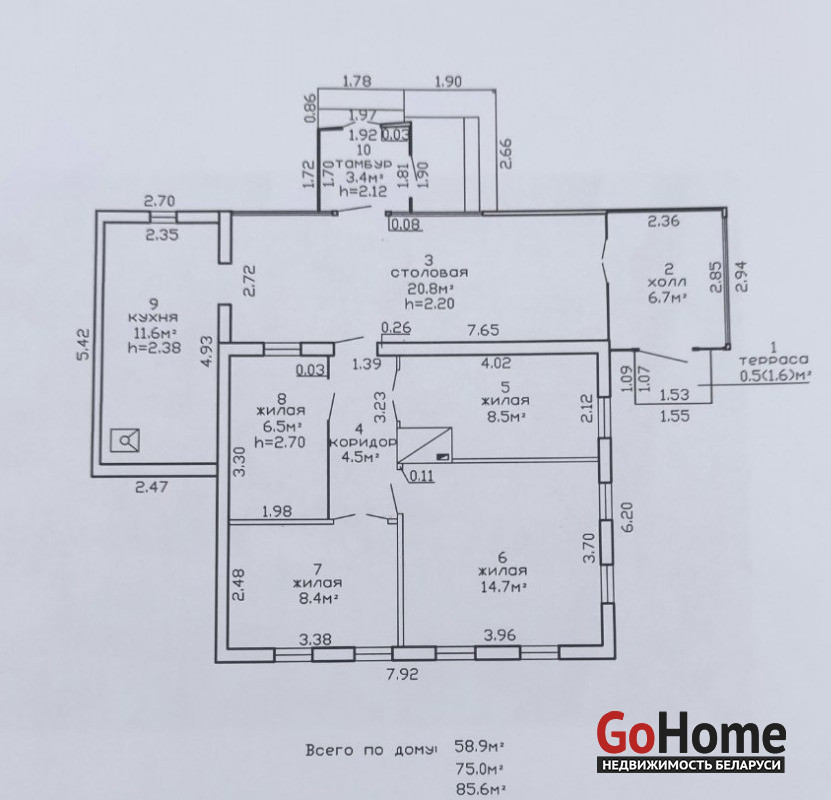0-комнатная, 101.8/54.4/- м2, (10.76 соток), 1 эт.