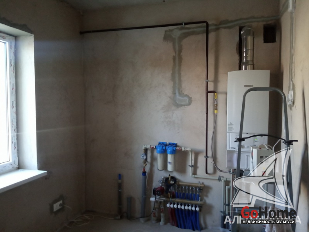 Коммуникации: отопление - газовый котел, газ - централизованный (в доме), водоснабжение - централизованный водопровод, электричество - централизованное, канализация - централизованная.