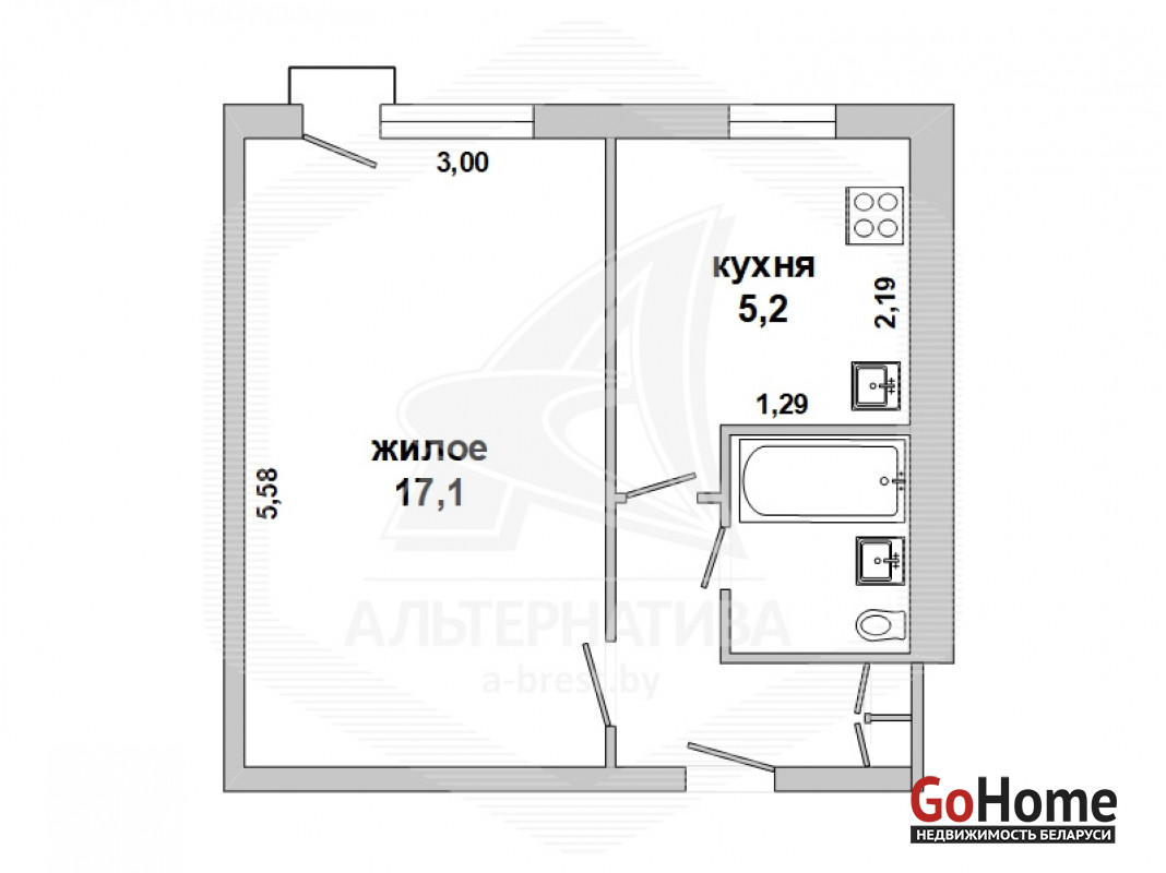 1-комнатная квартира, г. Брест, ул. Писателя Смирнова, 1976 г.п., 2 / 5 кирпич, 21,0 / 21,0 / 11,2 / 5,4, санузел совмещенный, деревянный стеклопакеты, деревянные межкомнатные двери, потолки (2,51 м) - побелка, полы - кр…