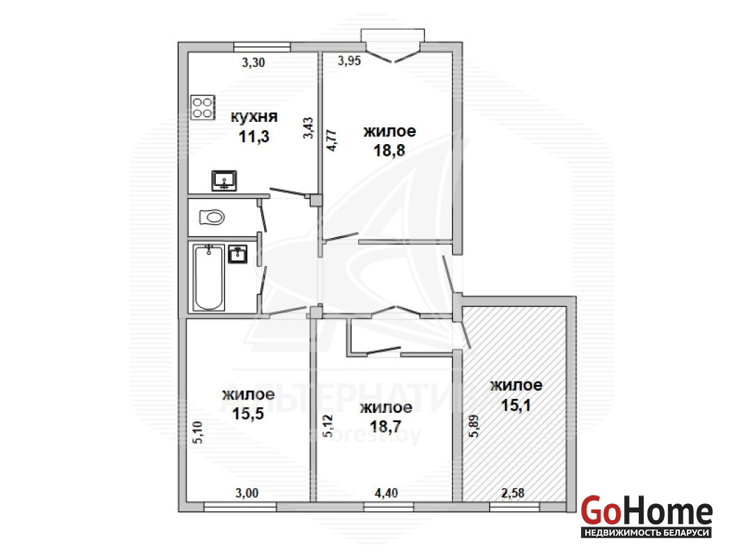 Доля (111/500) в четырехкомнатной квартире, г. Брест, ул. Рокоссовского, 1956 г.п., 3 / 3 кирпич, 100,4 / 100,4 / 68,1 / 11,3, санузел раздельный, стеклопакеты, межкомнатные двери - шпон, входная дверь металлическая, потолки - снежка (3,20 м), полы - окрашенная доска, стены оклеены обоями, ванна, газовая колонка (в кухне), домофон. Квартира в жилом состоянии. Чистый подъезд. Дом расположен в глубине двора. Во дворе парковка для автомобилей. Торг! Лот - 231900