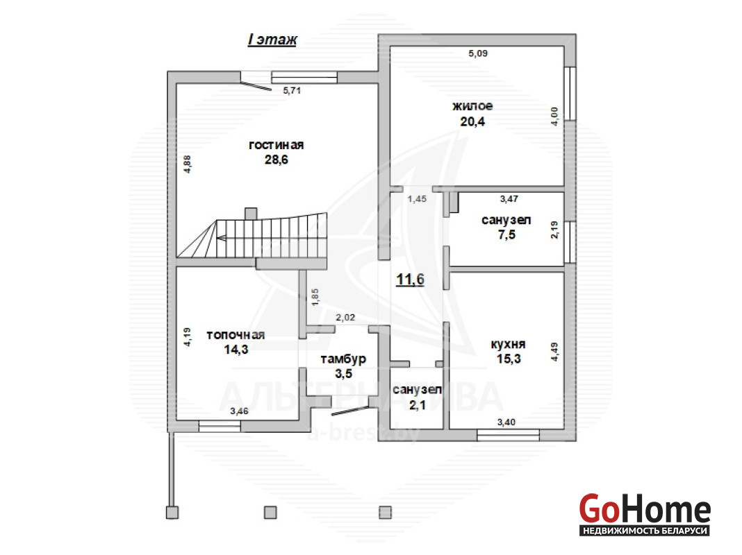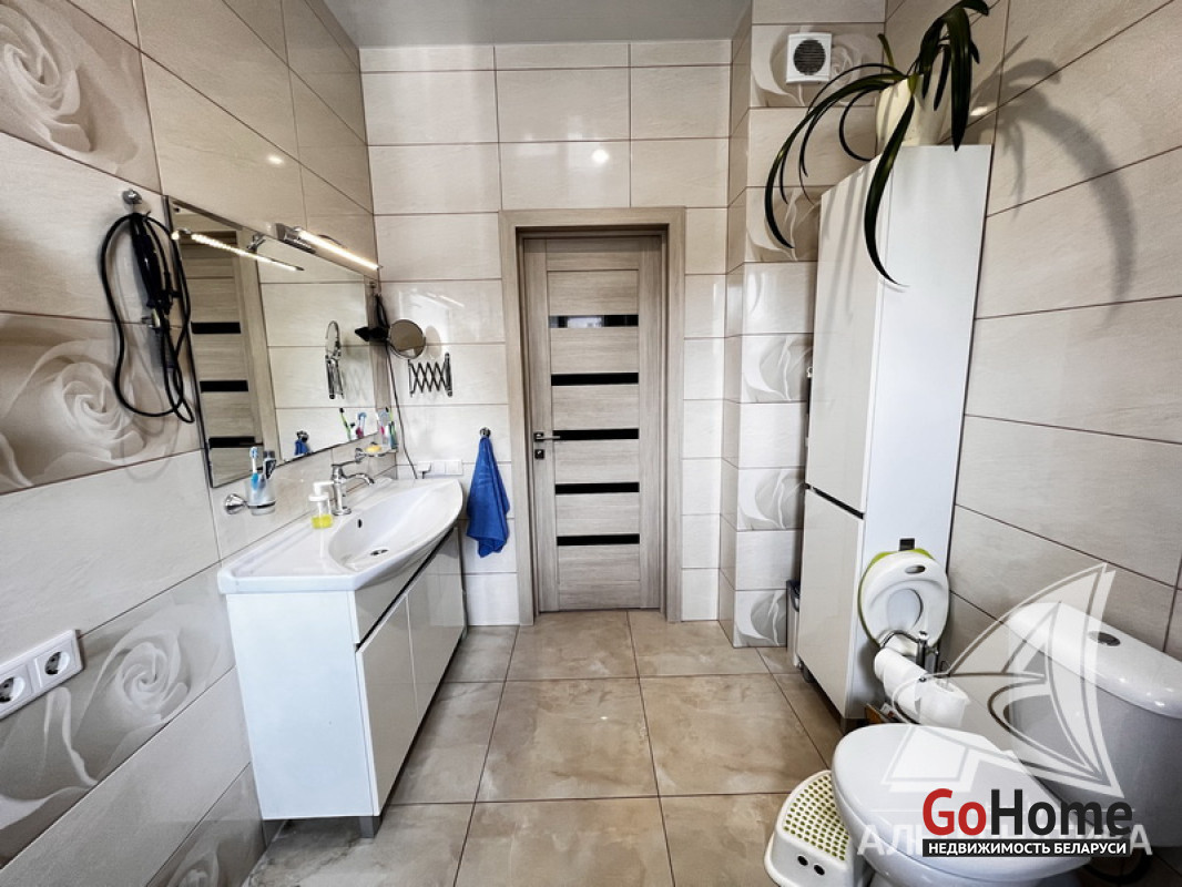 Таунхаус в г.Бресте. 2013 г.п. 1 этаж, мансарда. Общ.СНБ - 188,3 кв.м, общ.- 184,0 кв.м, жил.- 92,5 кв.м, кух.- 14,2 кв.м. 5 комнат, высота потолка - 2,80 м.