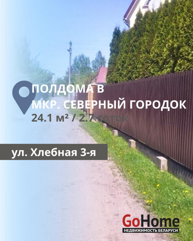 Продается полдома по ул. Хлебная-3-я, г. Брест. Дом деревянный, часть дома общей площадью 24,1 кв.м., жилая 15,1 кв..м, кухня 9 кв.м. Отдельный вход. Коммуникации центральные, свет есть.
