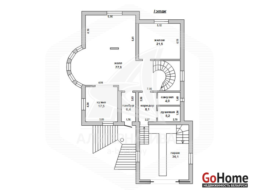 Жилой дом в Жабинковском р-не. 2019 г.п. 2 этажа. Общ.СНБ - 480,6 кв.м, общ.- 342,7 кв.м, жил.- 131,2 кв.м, кух.- 17,5 кв.м. 5 комнат, высота потолка - 3,0 м.