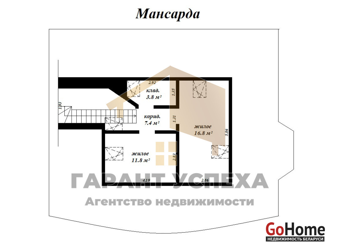 Мансардный этаж имеет 2 жилые комнаты и помещение для санузла. Мансардные окна VELUХ больших размеров для большей инсоляции. Утеплитель между этажами – 200 мм минеральной ваты. Выведена канализация, горячая и холодная вода.