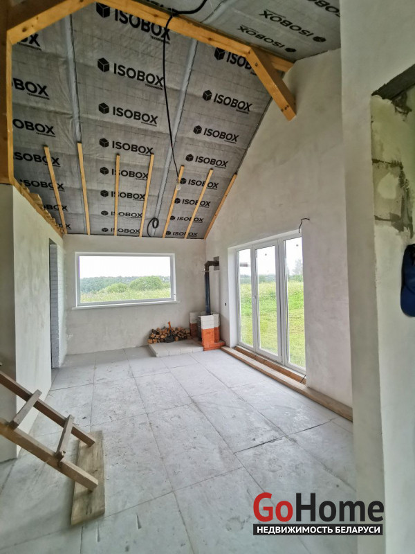Дом 54м2 с участком 15(сот.) и прудом. Интересная планировка, качественно (для себя) сделан и сдан в жилой фонд. Подъезд к дому асфальтированный, снег зимой чистят, есть центральный водопровод. В доме: крыша и пол утеплены, внутри разведено электричество (есть 380), вода, канализация. Перегородки между комнатами, перекрытие 1го этажа, хорошие окна ПВХ, готовы стены под отделку, все оштукатурено, подоконники и откосы готовы . Есть печь-камин . Возможен обмен на квартиру с моей доплатой. Могу торговаться.