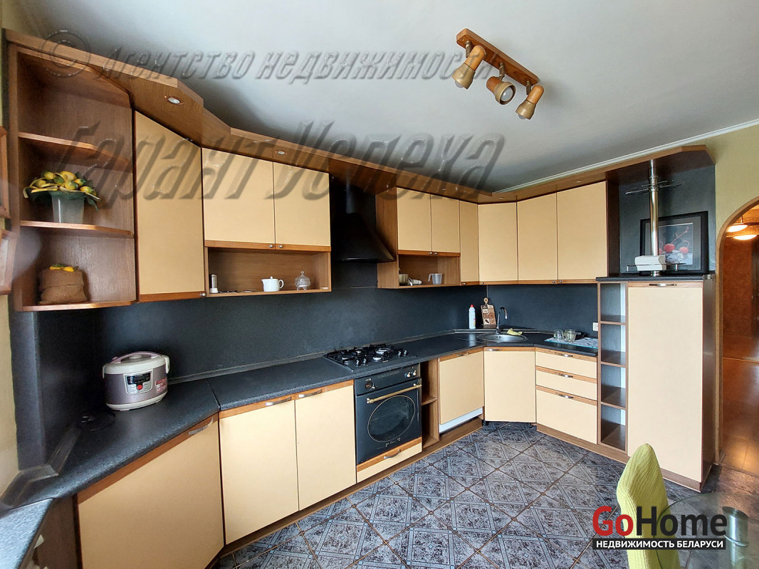 кухонный гарнитур со всей необходимой встроенной техникой. Санузел облицован керамической плиткой, угловая акриловая ванна, душевая кабина.