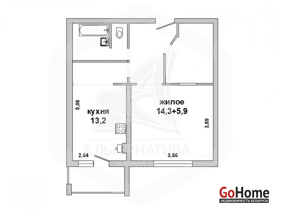 1-комнатная квартира, г. Брест, ул. Писателя Смирнова, 1976 г.п., 2 / 5 кирпич, 21,0 / 21,0 / 11,2 / 5,4, санузел совмещенный, деревянный стеклопакеты, деревянные межкомнатные двери, потолки (2,51 м) - побелка, полы - кр…